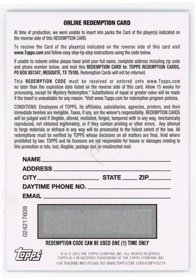 2025 Topps Now Cooper Flagg #D1 Orange Auto /25 Redemption Dallas Mavericks Rookie RC Basketball Card
