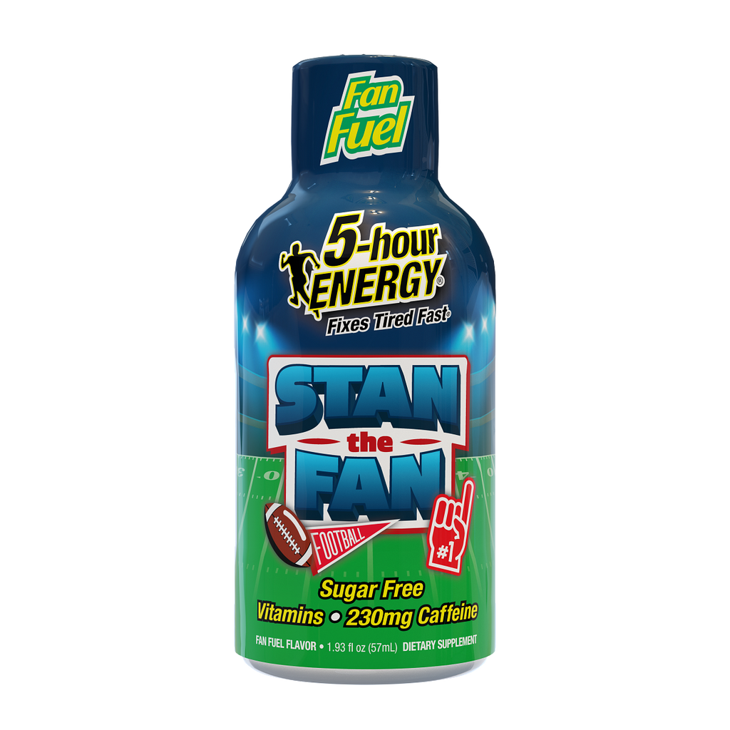 No matter what team you root for, we know being a fan requires heart, soul, and a whole lot of energy. That’s why we’ve created a limited-edition Stan the Fan 5-hour ENERGY® flavor to keep you fueled throughout the season. Filled with vitamins, nutrients, and about as much caffeine as 12 ounces of the leading premium coffee, this Fan Fuel 5-hour ENERGY® shot will get you through every close quarter and the all-important halftime snack break.