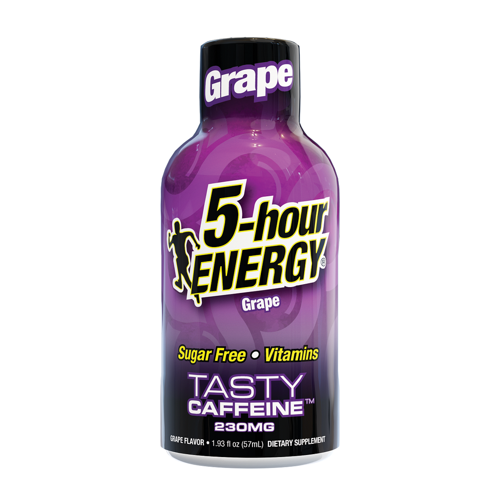 Each shot also has vitamins, nutrients and caffeine equal to 12 ounces of the leading premium coffee. So go ahead and book that afternoon meeting. Schedule that early morning appointment. Keep the dinner date. Grape Extra Strength 5-hour ENERGY has got your back. Buy in bulk so you always have them on hand.