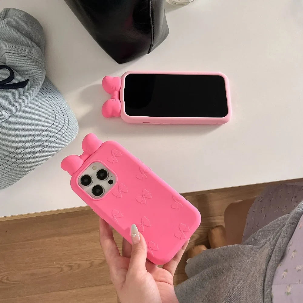 3D Cute Bowknot Cartoon Tie Silicone Phone Case For iPhone