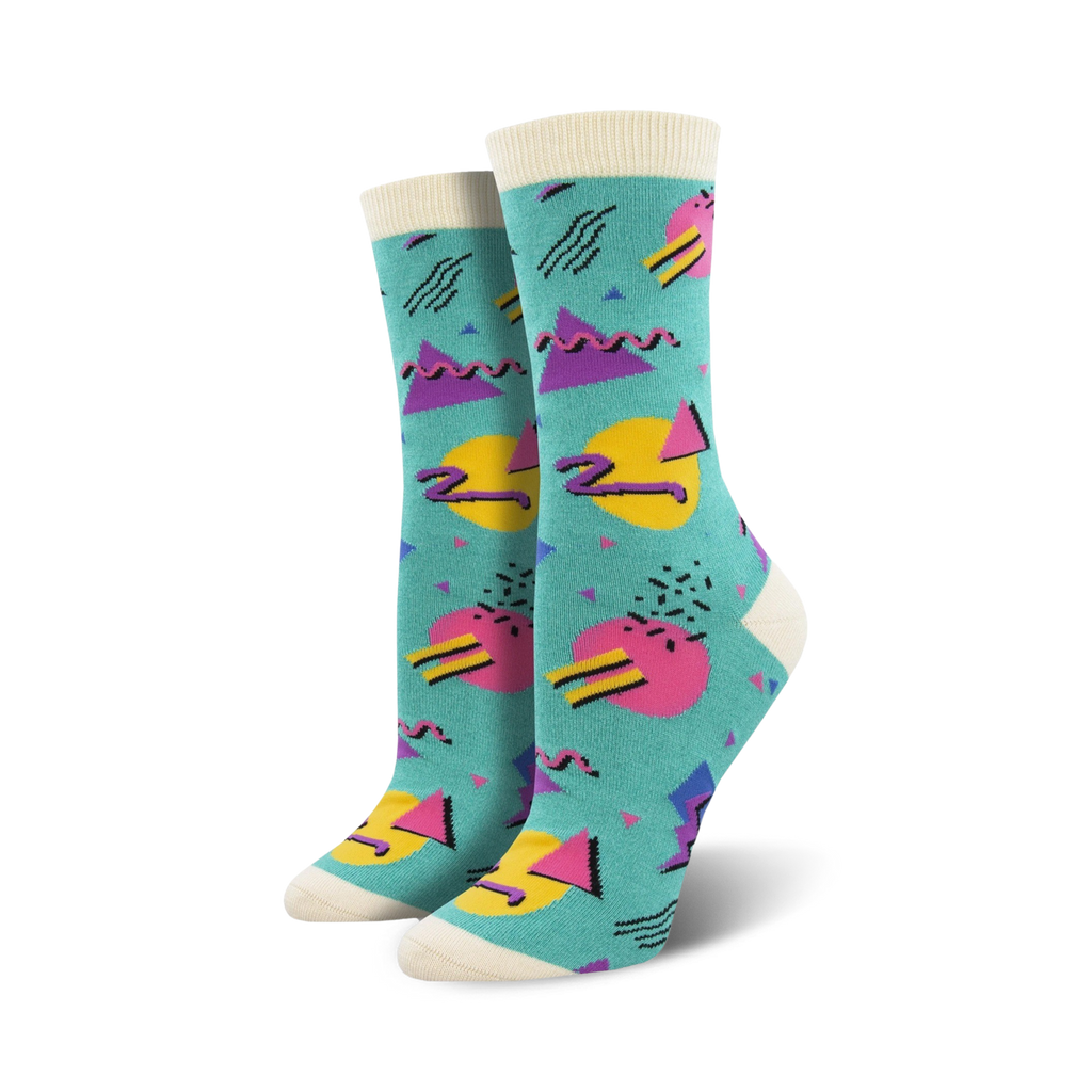 The 90's Vibes Bamboo Crew Socks, are sure to take you back in time with their bright colors and fun geometric designs. These womens crew socks are made from a soft and sustainable bamboo blend, perfect for everyday wear. Wear them with your favorite sneakers or sandals for a groovy look that's sure to get compliments.