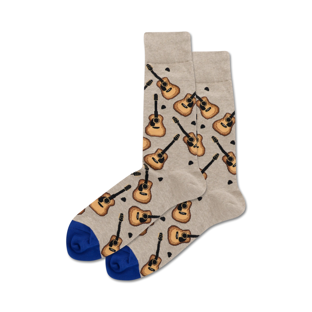 Blue-Toed, natural color acoustic guitar socks with guitar picks for music lovers. Strum your way into a good mood with these socks! They're so good, you'll want to give them a standing ovation.
