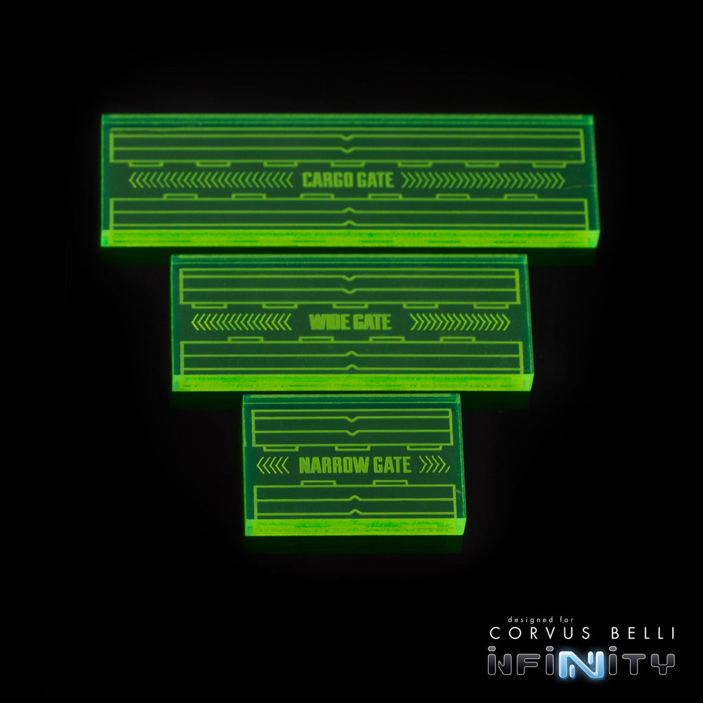 New for N3! Infinity the Game fluorescent acrylic markers for Wide Gate, Narrow Gate, and Cargo Gate. Perfect for ITS Missions that require them.