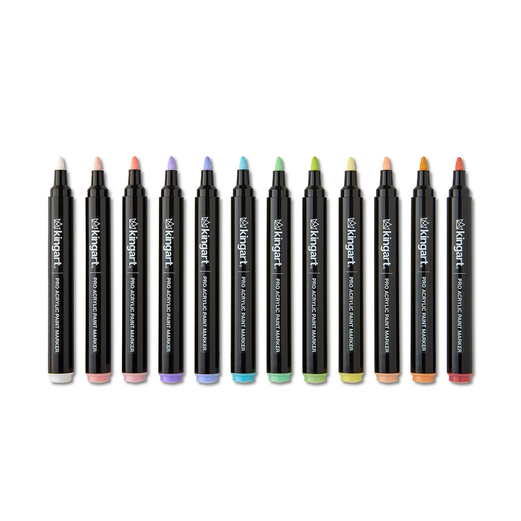 KINGART® PRO Acrylic Paint Markers, 12 Pastel Colors, 2mm Bullet Tip