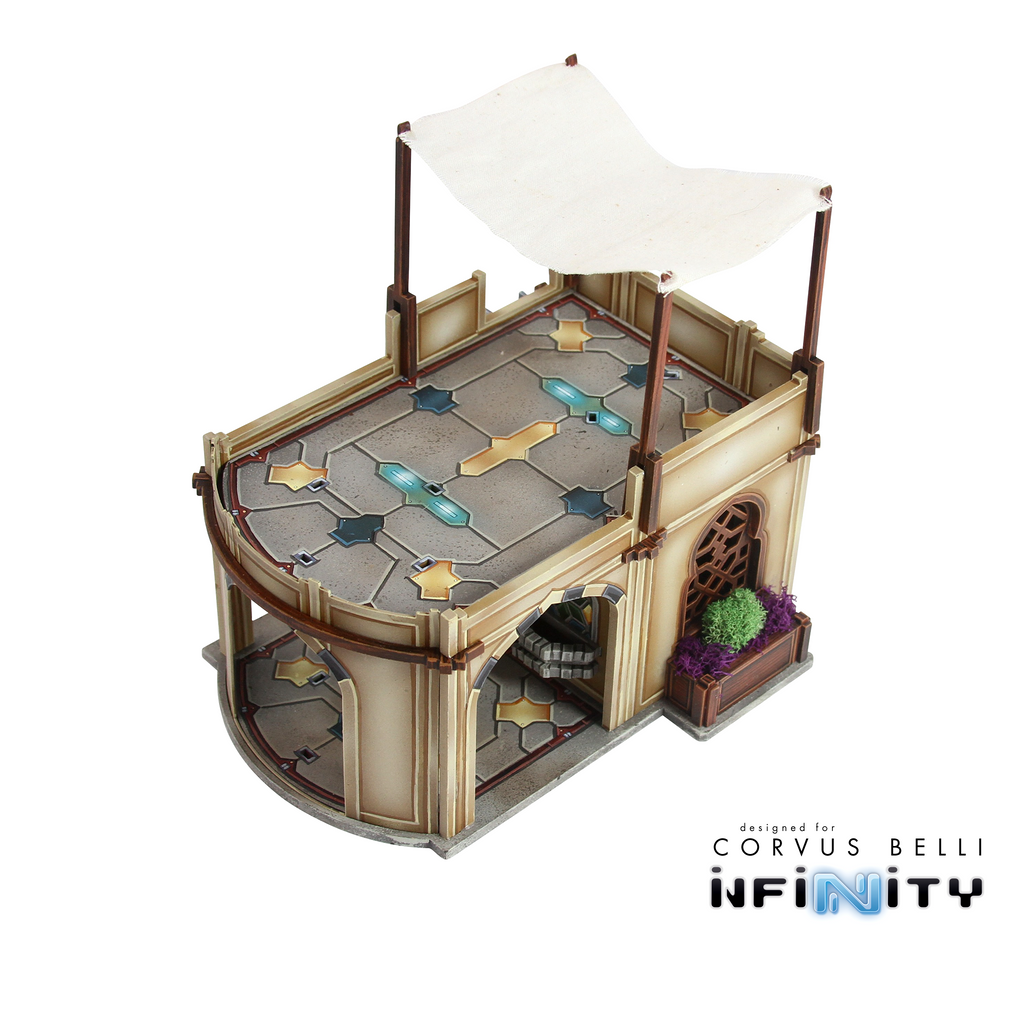 Alcazaba Utility Buildings are small Haqqislam-themed buildings with playable interiors for Infinity the Game. Two unique buildings are included in each pack.