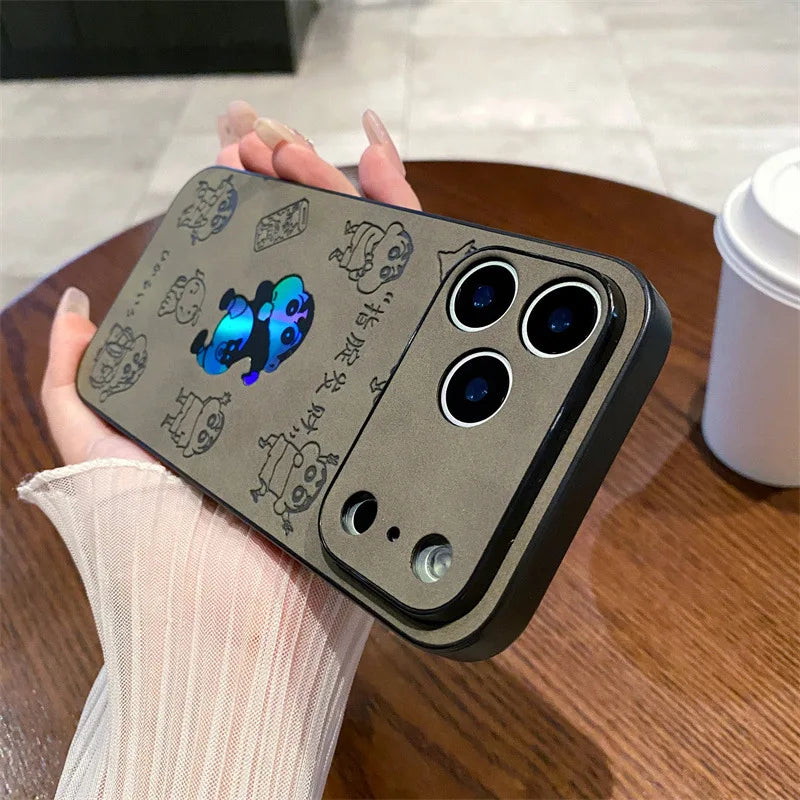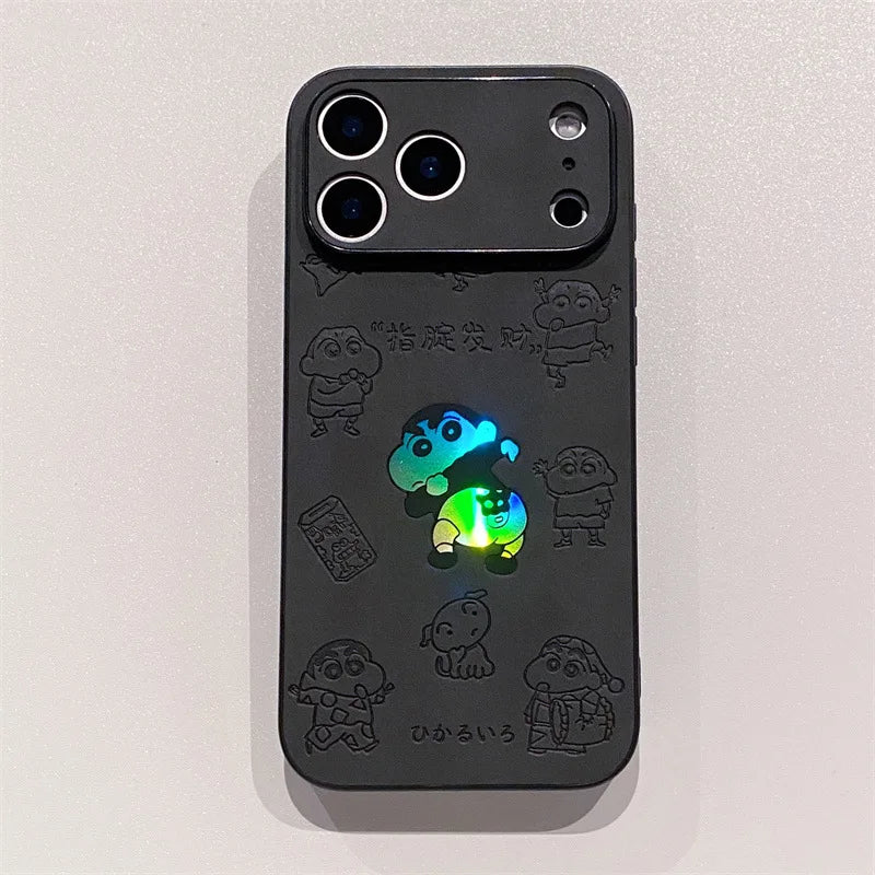 Anime Crayon Shin-chan Butt Emboss Laser Faux Leather Phone Case For iPhone