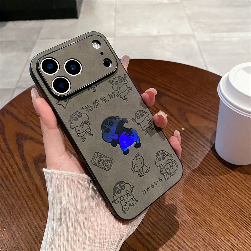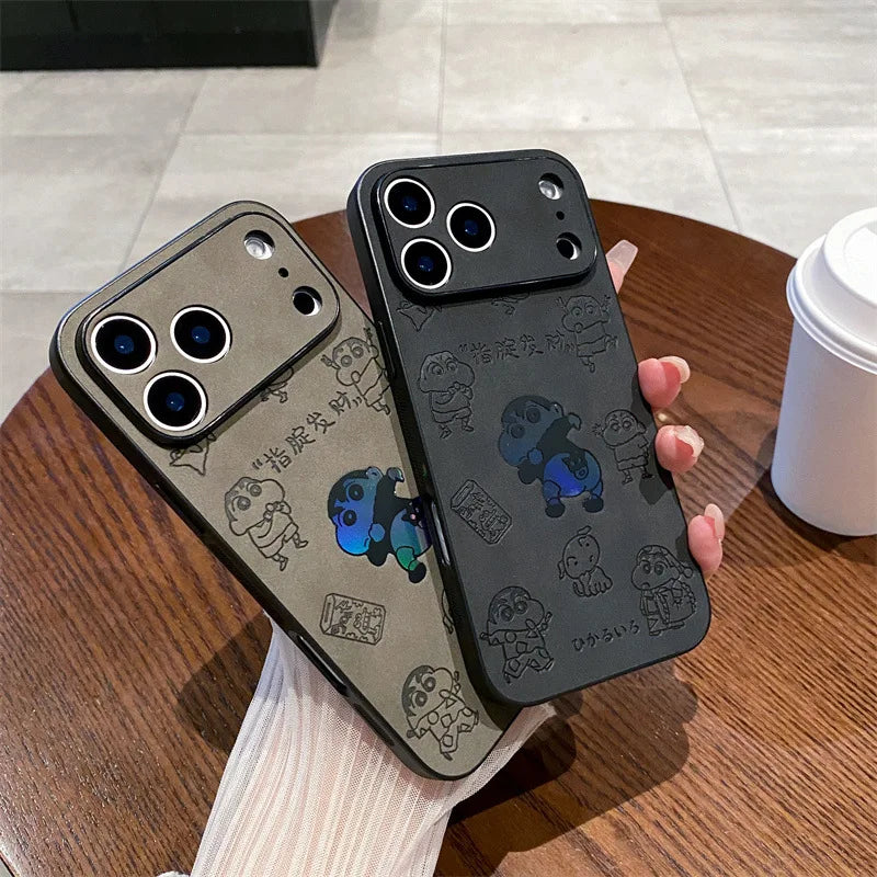 Protect your iPhone in style with this hilarious Crayon Shin-chan phone case featuring the character's iconic embossed design. Crafted from premium faux leather with laser-etched details, it combines durability with eye-catching anime flair. The textured surface provides excellent grip while the precise cutouts ensure easy access to all ports and buttons. Perfect for fans who want to showcase their love for this beloved comedy series while keeping their device safe from daily wear and tear. A conversation starter that's as fun as it is functional.