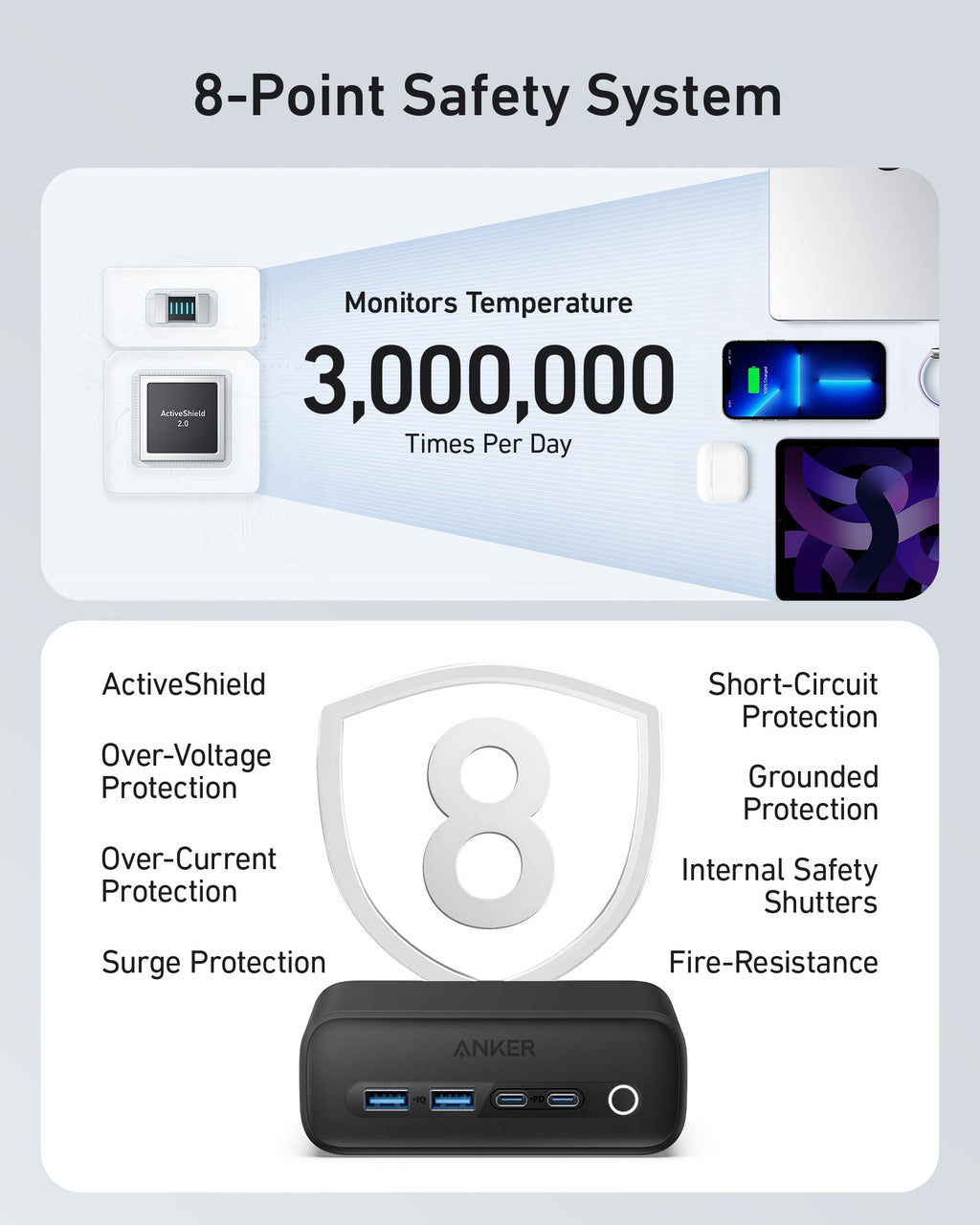 • Enhanced Safety Assurance: Features ActiveShield 2.0 technology that dynamically adjusts power and monitors temperature over 3 million times daily to protect your devices effectively.