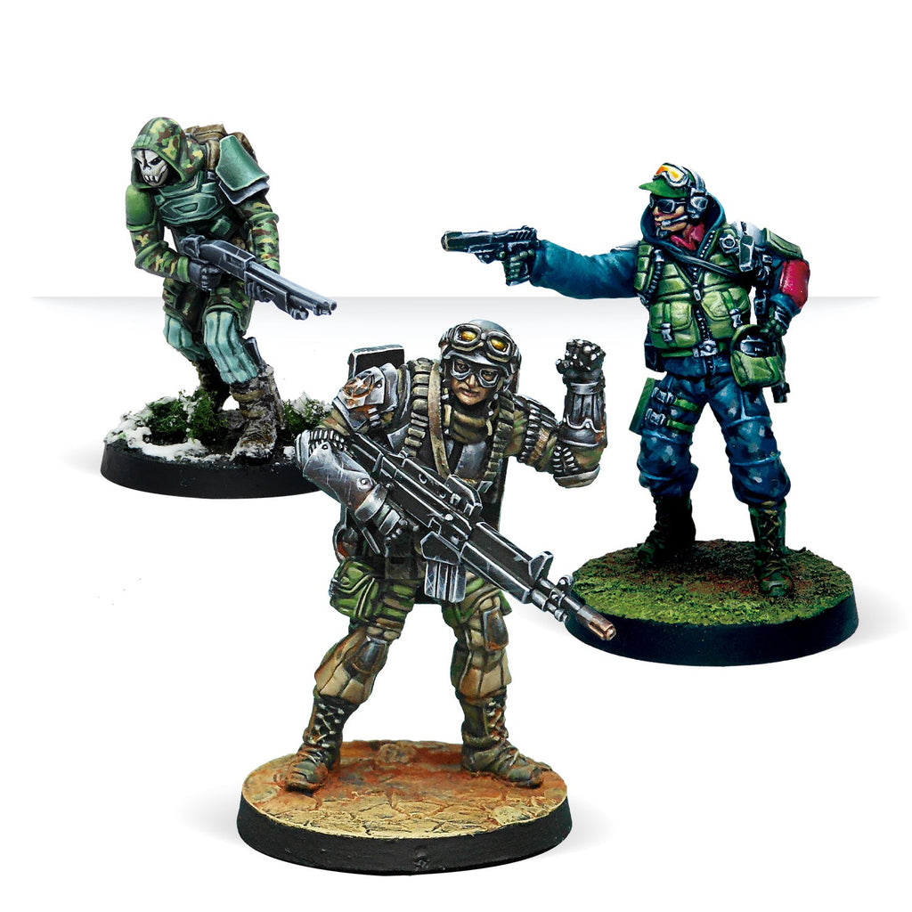 This box includes 3 miniatures for Ariadna: 1 Unknown Ranger with Spitfire AP, 1 Chasseur with Rifle and Light Flamethrower and 1 Strelok with Boarding Shotgun. With this box you can expand your options when creating an Army List and continue the Ariadna collection you started with Operation: Crimson Stone