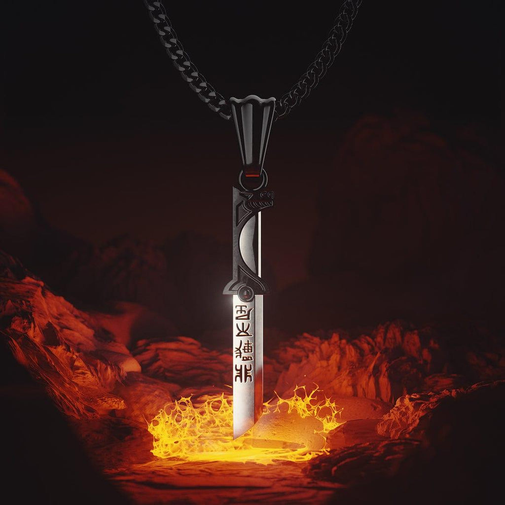 The Zuko Pendant features a dagger-style design and stands 27mm tall & 2mm thick & 4mm wide.