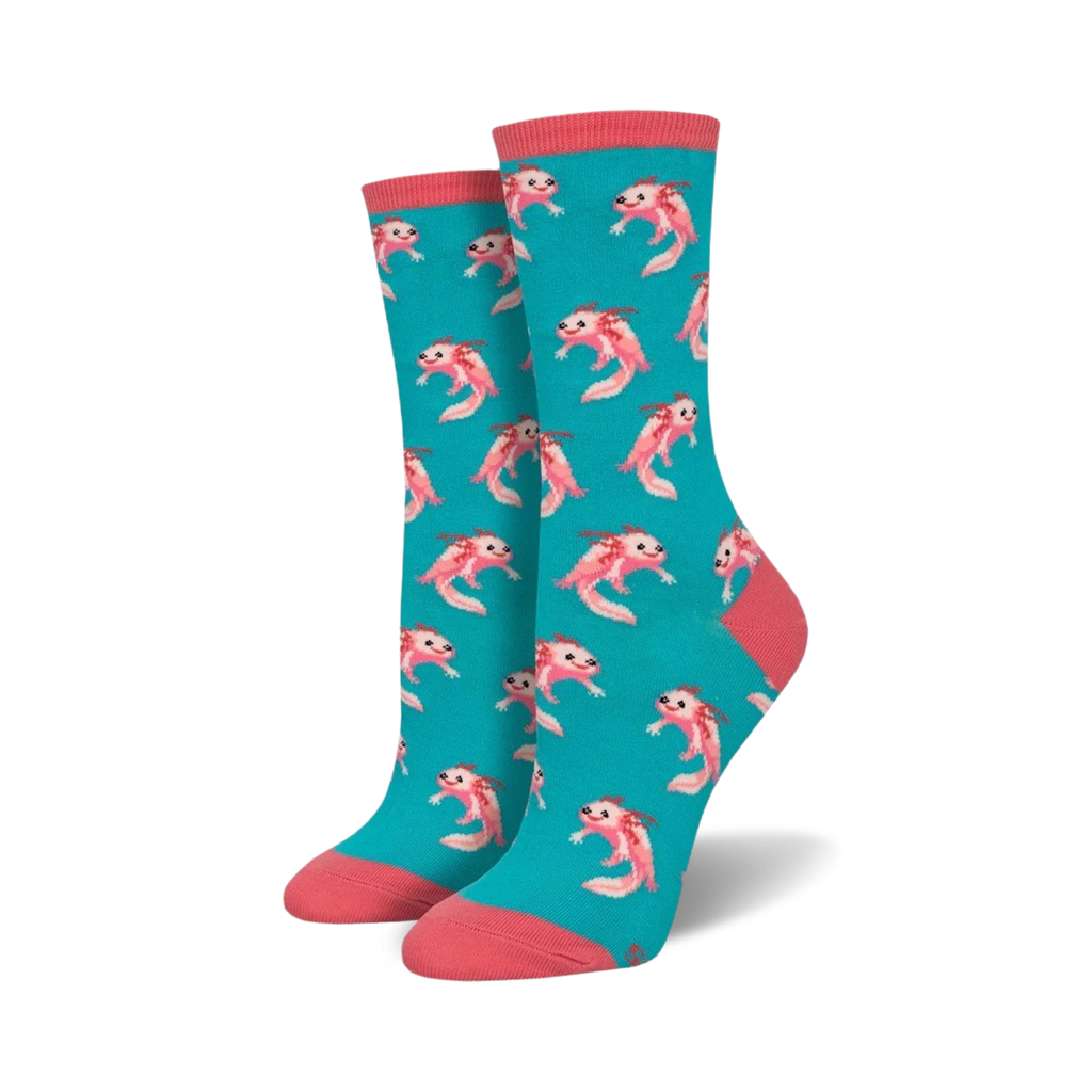 Brace yourself for the ultimate socks-perience with these fabulous Axolotl socks! Picture this: a vibrant turquoise canvas adorned with these charming salamander-like creatures in hot pink and blue. Let your feet bask in the cozy comfort of our cotton-blend fabric while these little cuties make a splash. Whether you're hitting the streets or lounging at home, these socks are sure to turn heads and spark a conversation or two. Get ready to embrace your inner axolotl and show off your fun and vibrant style!