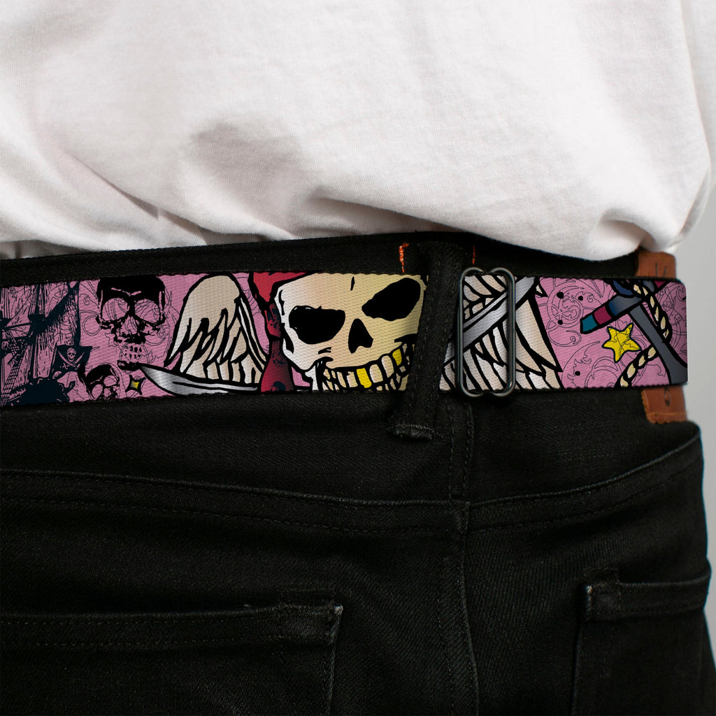 BD Wings Logo CLOSE-UP Full Color Black Silver Seatbelt Belt - Dead Men Tell No Tales Pink Webbing