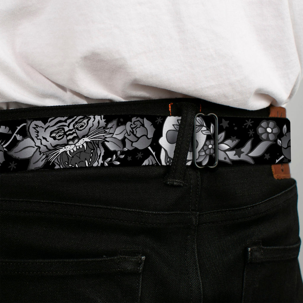 BD Wings Logo CLOSE-UP Full Color Black Silver Seatbelt Belt - Death Before Dishonor Black/White Webbing