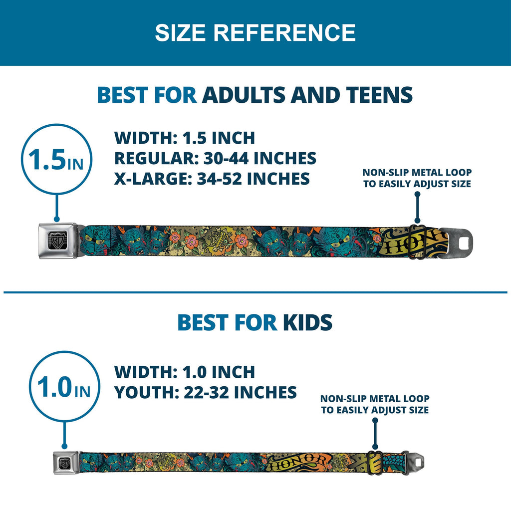 Buckle-Down's iconic Seatbelt Belt is a cool, smart, and exciting blend of fashion and function. Always a conversation starter, our Seatbelt Belt adjusts to perfectly fit your waist while showcasing your unique sense of style. Our Seatbelt Belts are made with authentic automotive style seatbelt buckles making them easy to open and close at the push of a button. Our adult-size Seatbelt Belts are 1.5 inches wide and our kid-sized Seatbelt belts are 1.0 inch wide. This product is Handcrafted in USA by Buckle-Down Inc. and officially licensed by Buckle-Down.