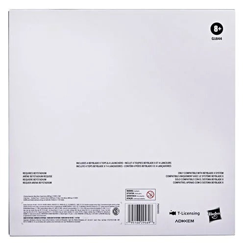 Experience the thrill of Beyblade X, the next generation of Beyblade stadiums, launchers, and tops. The Beyblade X 25th Anniversary Set includes 4 launchers and 4 Attack Type tops with Attack Type Blades: Dragoon Storm 4-60RA left-spin top, Storm Pegasis 3-70RA right-spin top, Victory Valkyrie 2-60RA right-spin top, and Dran Sword 3-60F Attack Type right-spin top. Launch right into battle or reconfigure the interchangeable blades, ratchets, and bits to build your perfect Beyblade top. Beystadium required, sold separately. Beyblade X features the X-Celerator Gear System to level-up your game. When the gear of a Beyblade X top engages the rail of the Beystadium arena, it can super-accelerate into an Xtreme Dash around the stadium for crushing collisions and epic bursts. Launch your tops into fierce clashes against your opponent's to score points. Hasbro Beyblade toys with authentic Takara Tomy die-cast metal tops make great kids gifts for ages 8 and up. Includes: 4 Beyblade X Tops and 4 Launchers.