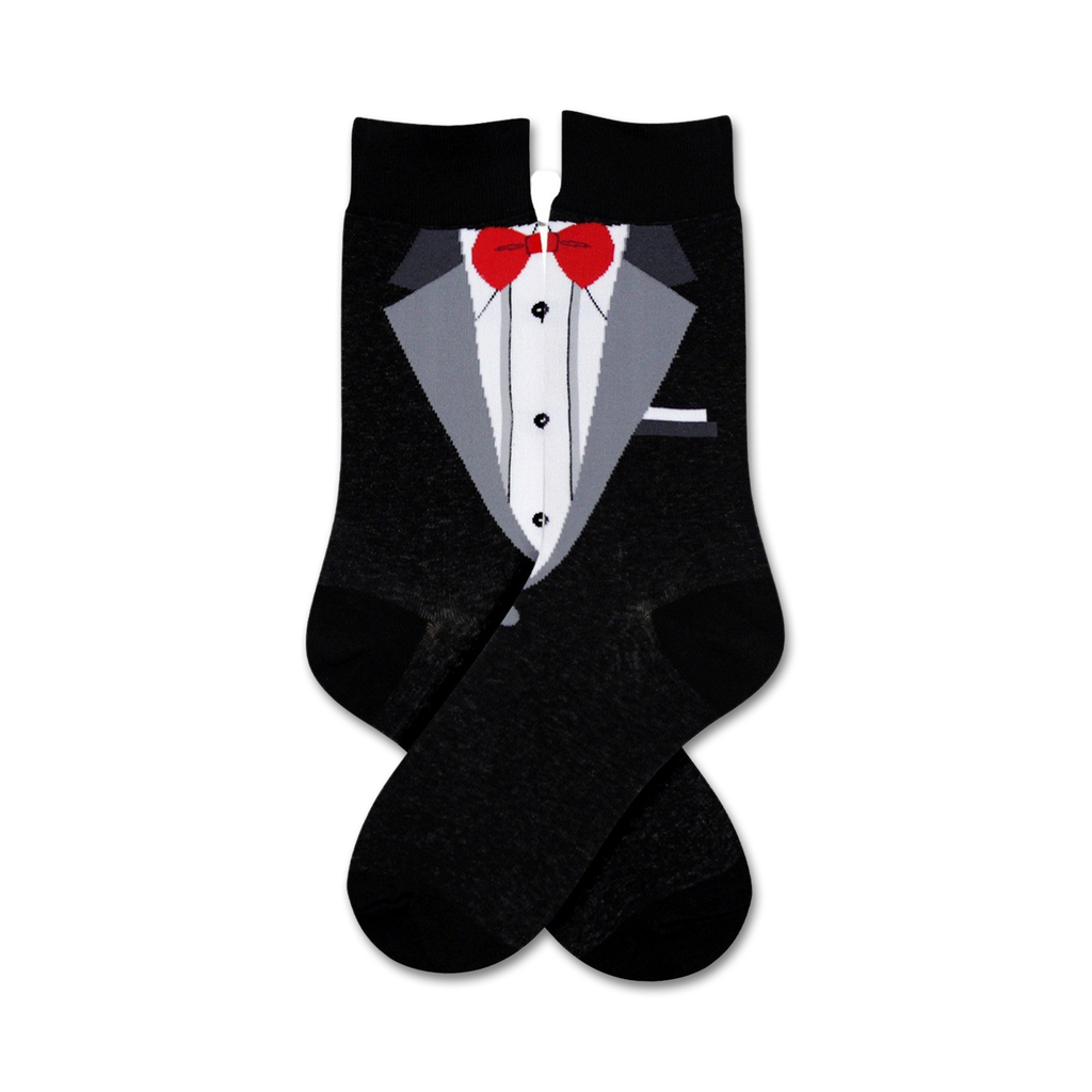 Tuxedo socks for the snazzy man in your life. Inspired by the big day, these socks are all dressed up with a black jacket, white shirt, and a red bowtie. Get yourself a pair and you'll be the best dressed man at any wedding. Only don't drink too much and fall in a pool!