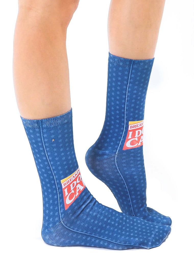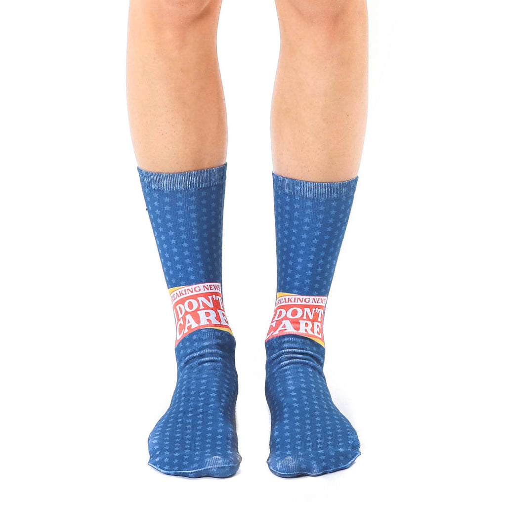 Get ready for the most exhilarating socks ever! With the 'Breaking News...I Don't Care' socks, you'll be the star of the show, or rather, the sock show! These sassy crew socks, designed for both men and women, feature a bold pattern of white stars on a blue background, topped off with the iconic phrase 'Breaking News' and 'I Don't Care' in red and yellow. Embrace your inner sass and let your feet do the talking!