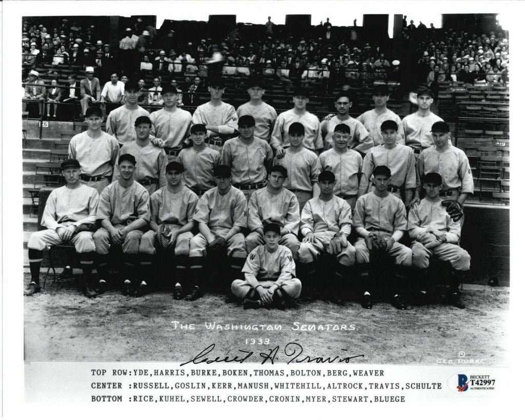 Cecil Travis Signed 8x10 Photo BAS Auto 1933 Senators Team Photo Beckett