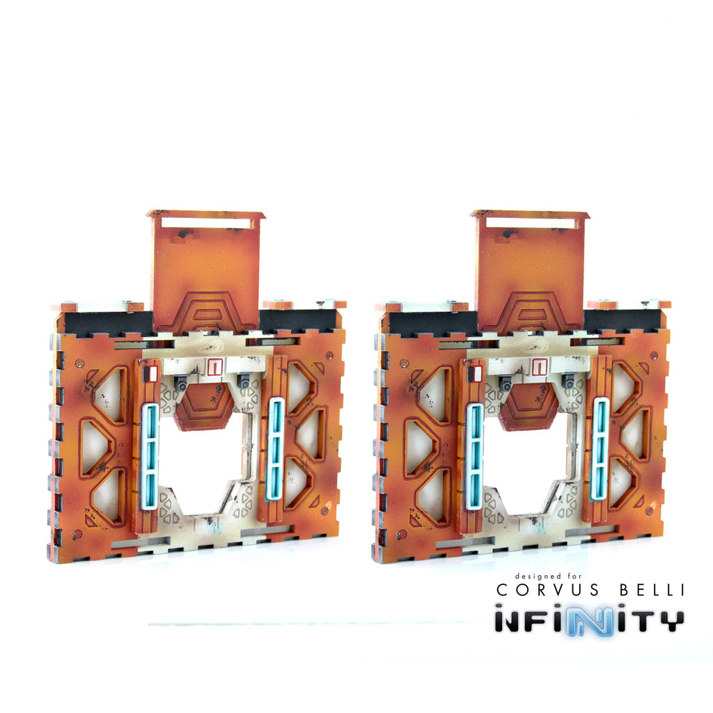 This Product Contains two Cosmica Interior Doors, designed for Infinity the Game. Compatible with our Cosmica Zeta and Gamma Frames. Allows connection of Cosmica frames to lengthen your hallway while providing necessary cover and LOF-blocking along the way.