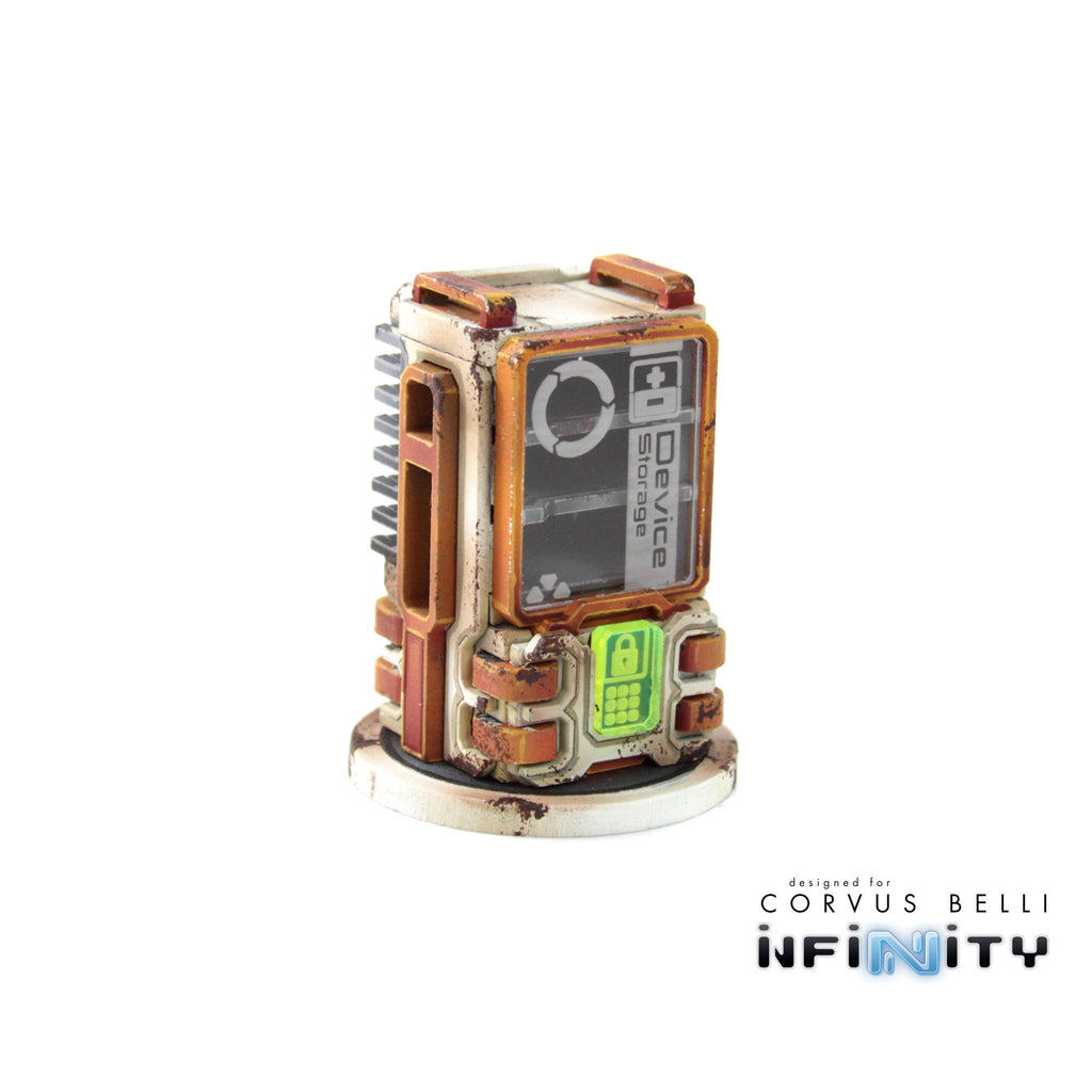 This product contains one set of Cosmica Storage Lockers, including one Weapons Locker, one Device Storage Locker, one Medical Storage Locker, one Personnel Storage Locker, and one Long Shelf.