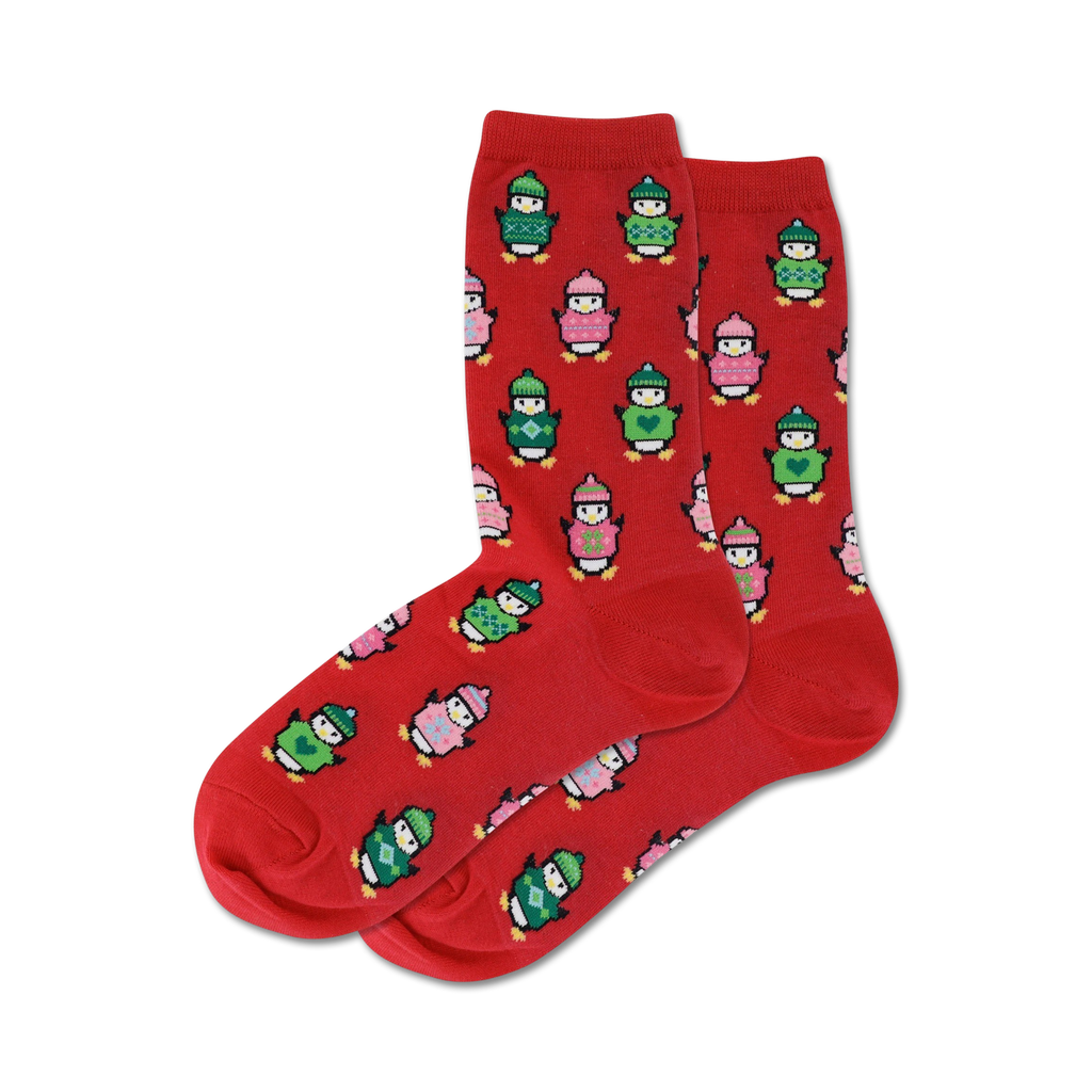 Cozy up in our Cozy Penguin socks and waddle your way through the day in style! These cheerful crew socks for women feature a playful pattern of penguins sporting colorful hats and sweaters. Perfect for penguin lovers and anyone who appreciates a touch of whimsy in their wardrobe.