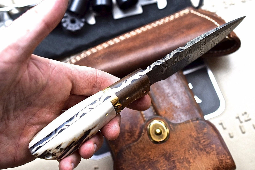 Custom Handmade Damascus Wood-New Zealand Red Stag Hunting Skinning Knife