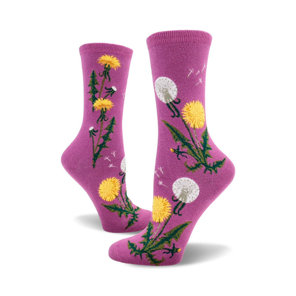 Dandelion socks: The first colorful sign of spring is here! These super cute and comfy crew socks bloom in a bright blue sky of joy with a pattern of white and yellow dandelion flowers with green stems and leaves. Wear a pair of these spirited socks to remind you of new beginnings and a fresh start! Perfect for any occasion, these socks bring a little bit of sunshine wherever you go. Grab a pair today and let your feet flourish!