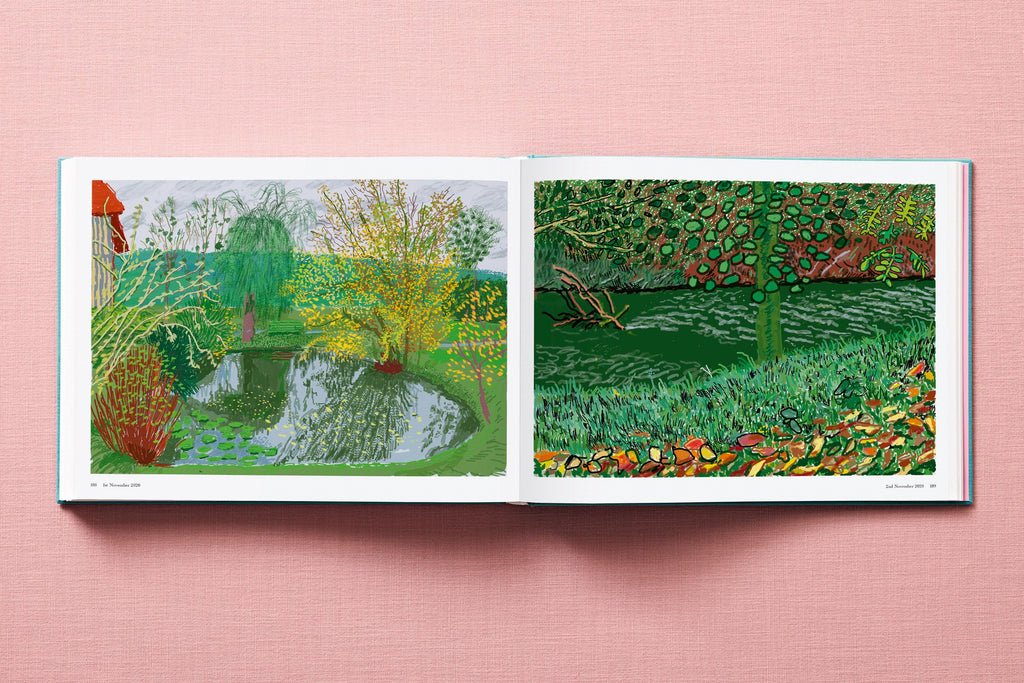 Now in an unlimited edition: David Hockney’s artist book of iPad paintings, made around a small farmhouse in Normandy during a year of lockdown. His vivid impressions of the changing light and landscape are brought from the glowing screen to the printed volume with a special six-color printing treatment, giving expression to every shade and hue.