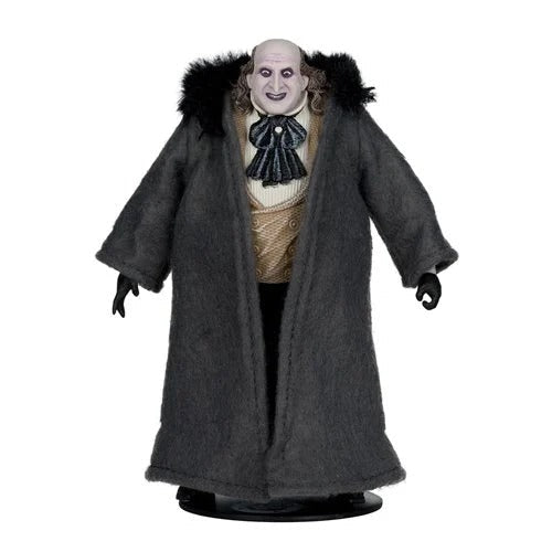The DC Multiverse Deluxe Theatrical Edition Wave 2 Batman Returns The Penguin 7-Inch Scale Action Figure features ultra articulation with up to 22 moving parts for a full range of posing. The Penguin includes a removable top hat, a soft goods coat, an umbrella and a figure display base. Also included is a collectible art card with figure artwork on the front, and character biography on the back. This Penguin figure measures approximately 6 1/3-inches tall and comes packaged in a Deluxe Theatrical Edition window box with blue foil. Ages 12 and up!