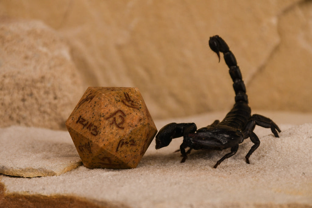 This twenty-sided die, inscribed with Demotic script (cursive hieroglyphics), likely dates back to the Graeco-Roman period, 1st century AD. The original die, also made of limestone, was discovered in the Dakleh Oasis in Egypt, offering a glimpse into the use of dice during this fascinating era - which was likely used for divination purposes.
