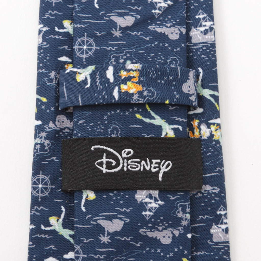 "Even though you want to try to, never grow up." Relive the wonder of Neverland and fly high with Peter and his Lost Boys. This navy, 100% cotton tie, shows Peter and the Darling siblings flying over the wonders Neverland has to offer, including Captain Hook's ship. Officially licensed by Disney.