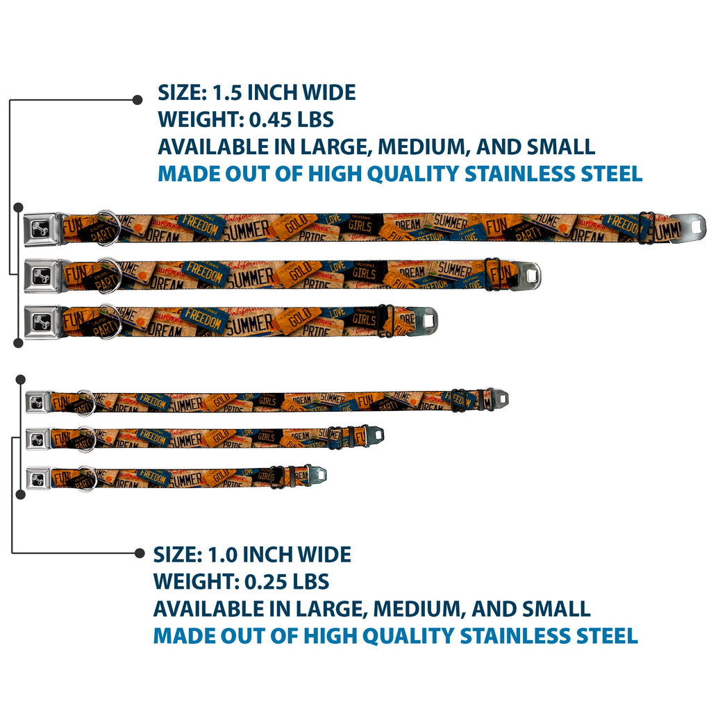 Dog Bone Seatbelt Buckle Collar - Cali License Plates Stacked Vintage