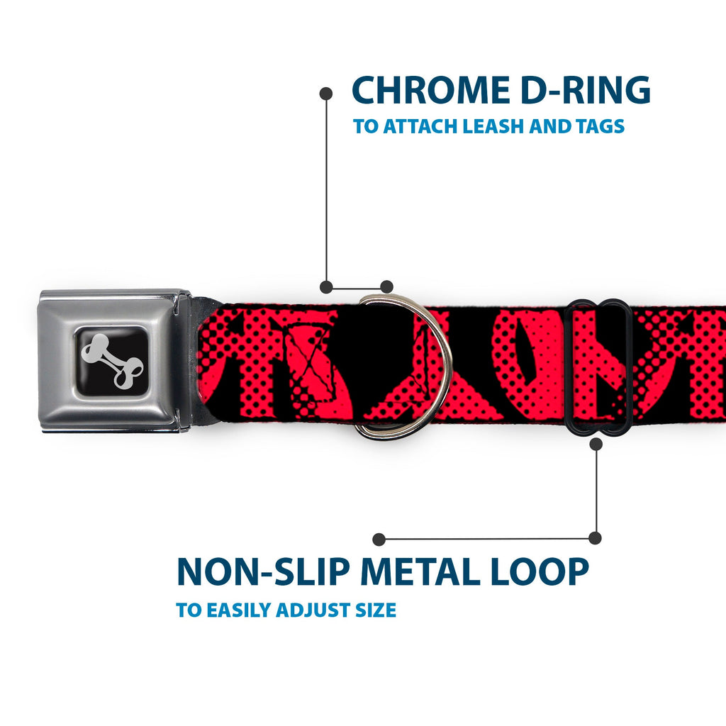 Dog Bone Seatbelt Buckle Collar - Peace Dots Black/Fuchsia