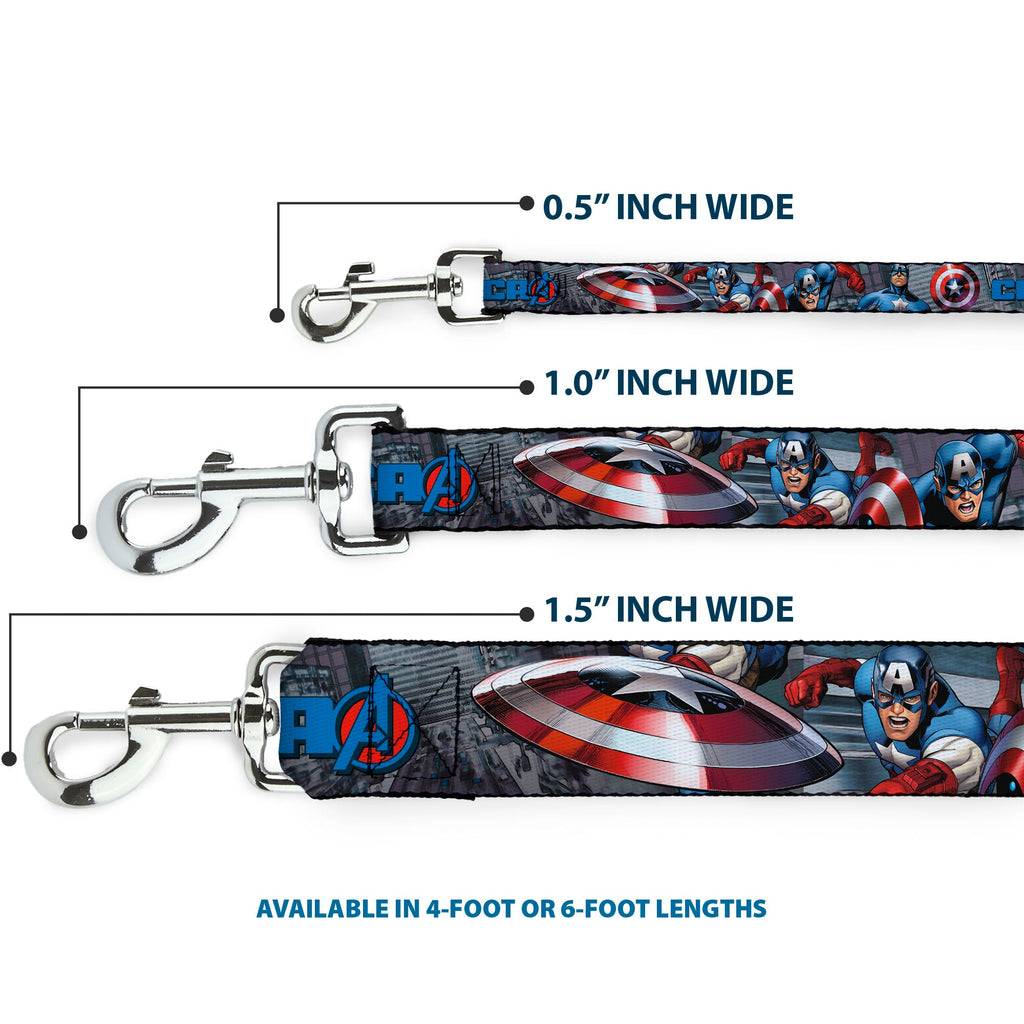 Dog Leash - CAPTAIN AMERICA w/Avengers Logo Cityscape