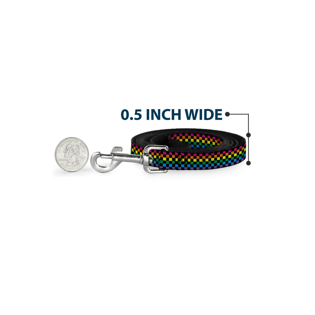 Dog Leash - Checker Black/Neon Rainbow