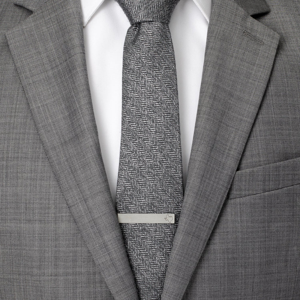Carry your love for Texas with you wherever you go with our antique silver base metal tie bar. A recessed black outline of the state of Texas sits at the end of the tie bar, creating a subtle look. On the reverse side is a hidden message that reads, "Don't Mess With Texas." The expert craftsmanship of our base metal tie bars ensures long-lasting durability. Pairs perfectly with our Silver Texas Cufflinks or Silver Texas Lapel Pin.