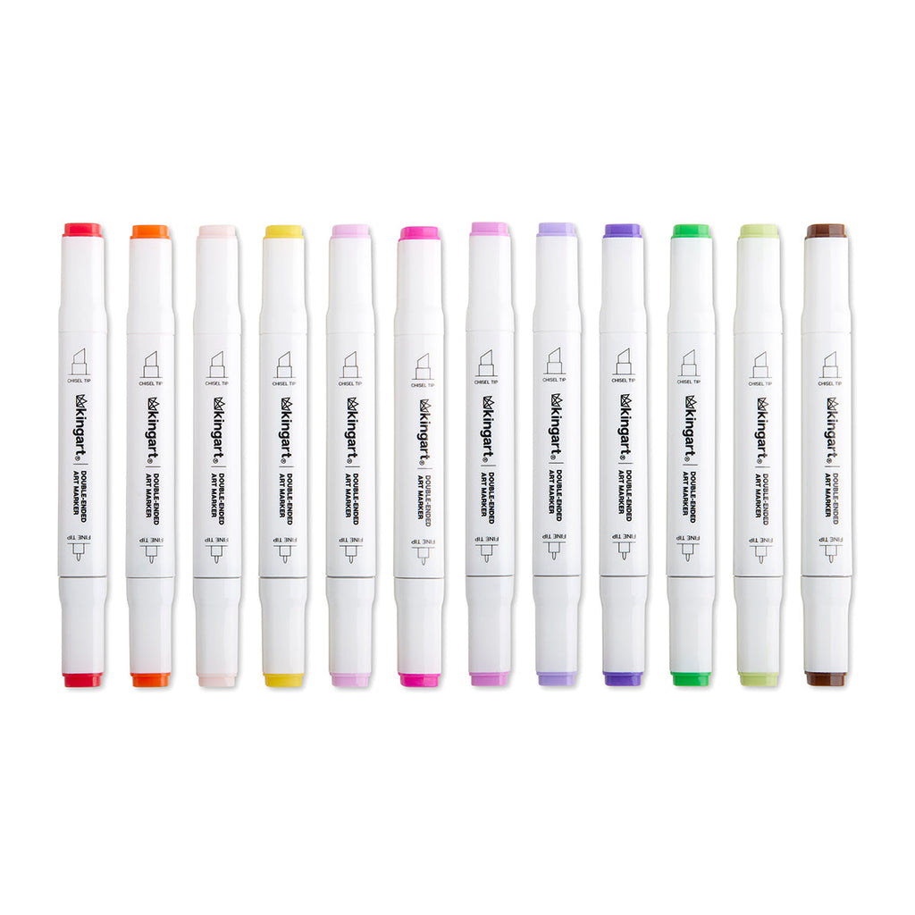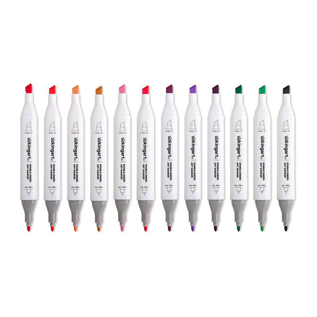Broad strokes or fine lines, you choose with KINGART® PRO Double-Ended Art Markers. Our Pro Level alcohol-based inks are richly saturated for brilliant color and smooth blending.