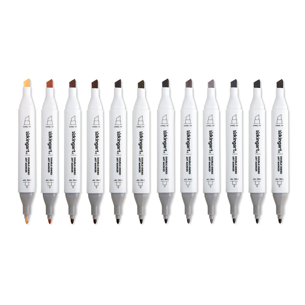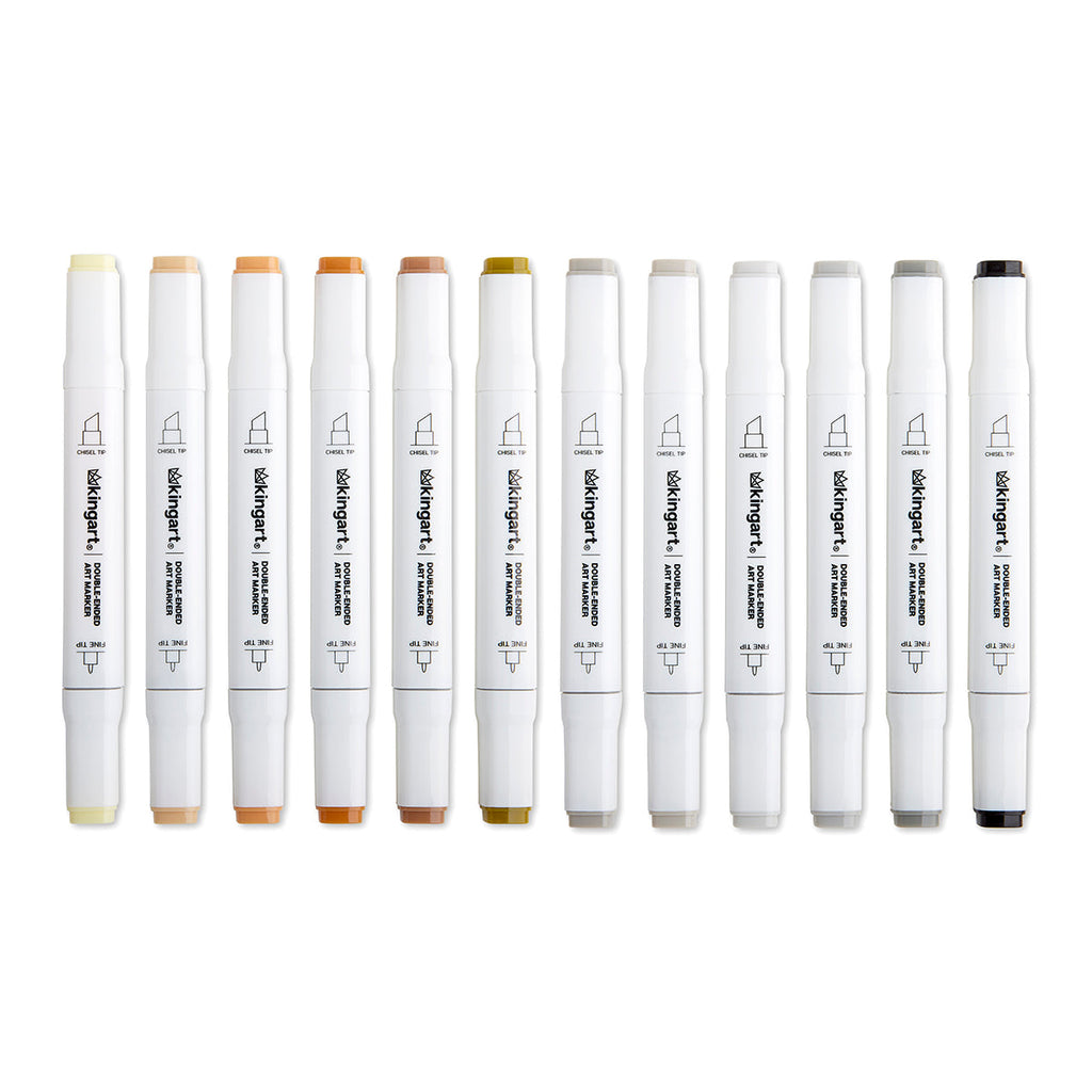 KINGART® PRO Double-Ended Art Alcohol Markers, 12 Neutral Palette Colors with Both Fine & Chisel Tips and Superior Blendability
