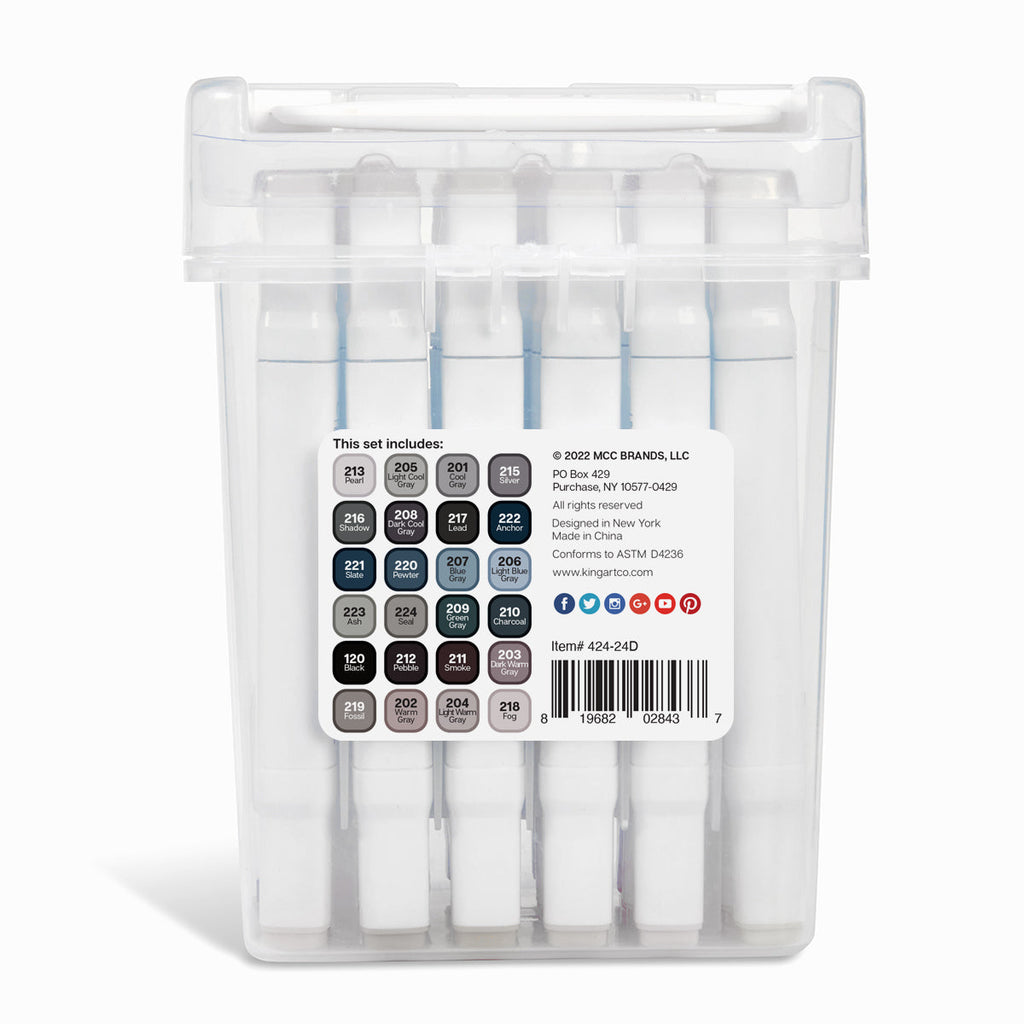 KINGART® PRO Double-Ended Art Alcohol Markers, 24 Gray Tone Palette Colors with Fine & Chisel Tips
