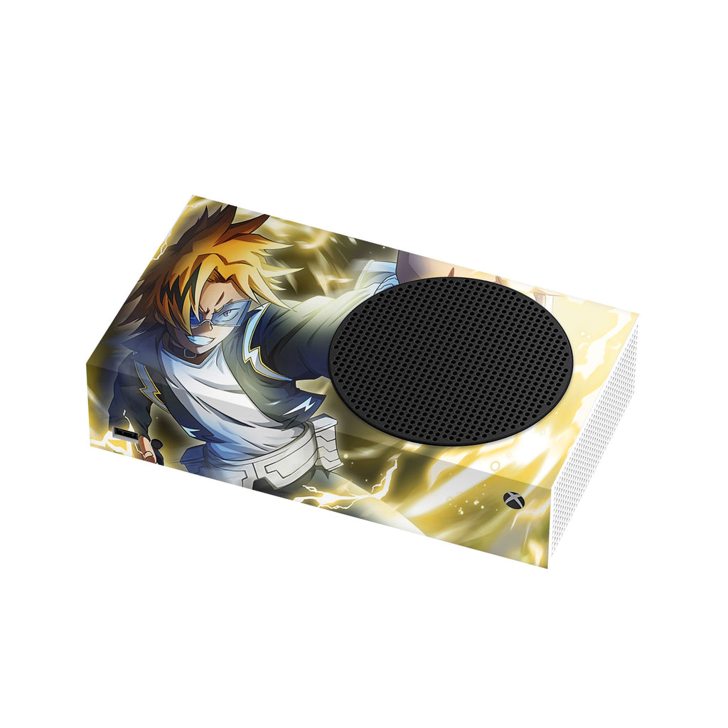 Electrify your setup with the Electric Hero vinyl skin for Xbox Series S. Designed for fans of dynamic energy, this bold design merges vivid visuals with robust durability.
