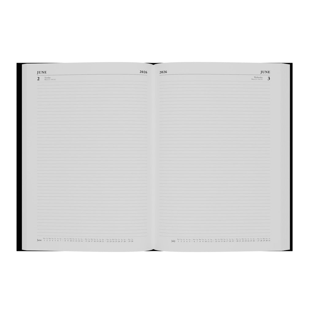 The Essential Diary for everyone. These diaries offer excellent value and a host of practical features including a foiled date stamp, vast range of colours and a clear, practical layout that will suit business and personal use, in the office, at home and on the go.