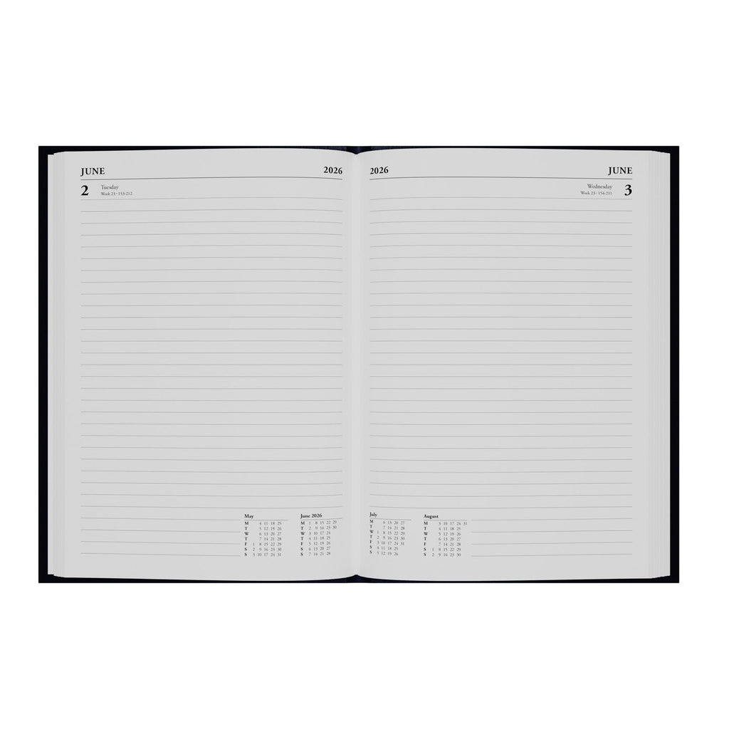 The Essential Diary for everyone. These diaries offer excellent value and a host of practical features including a foiled date stamp, vast range of colours and a clear, practical layout that will suit business and personal use, in the office, at home and on the go.