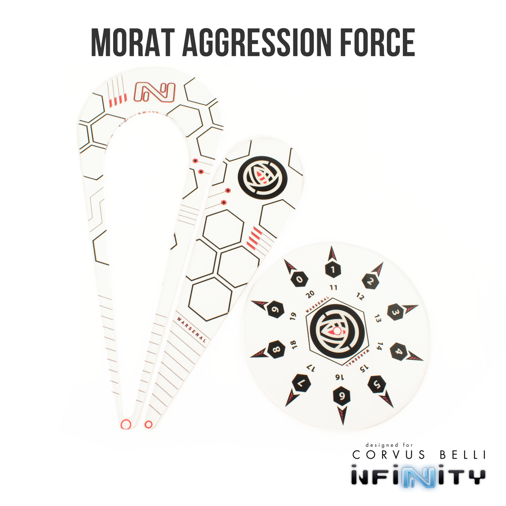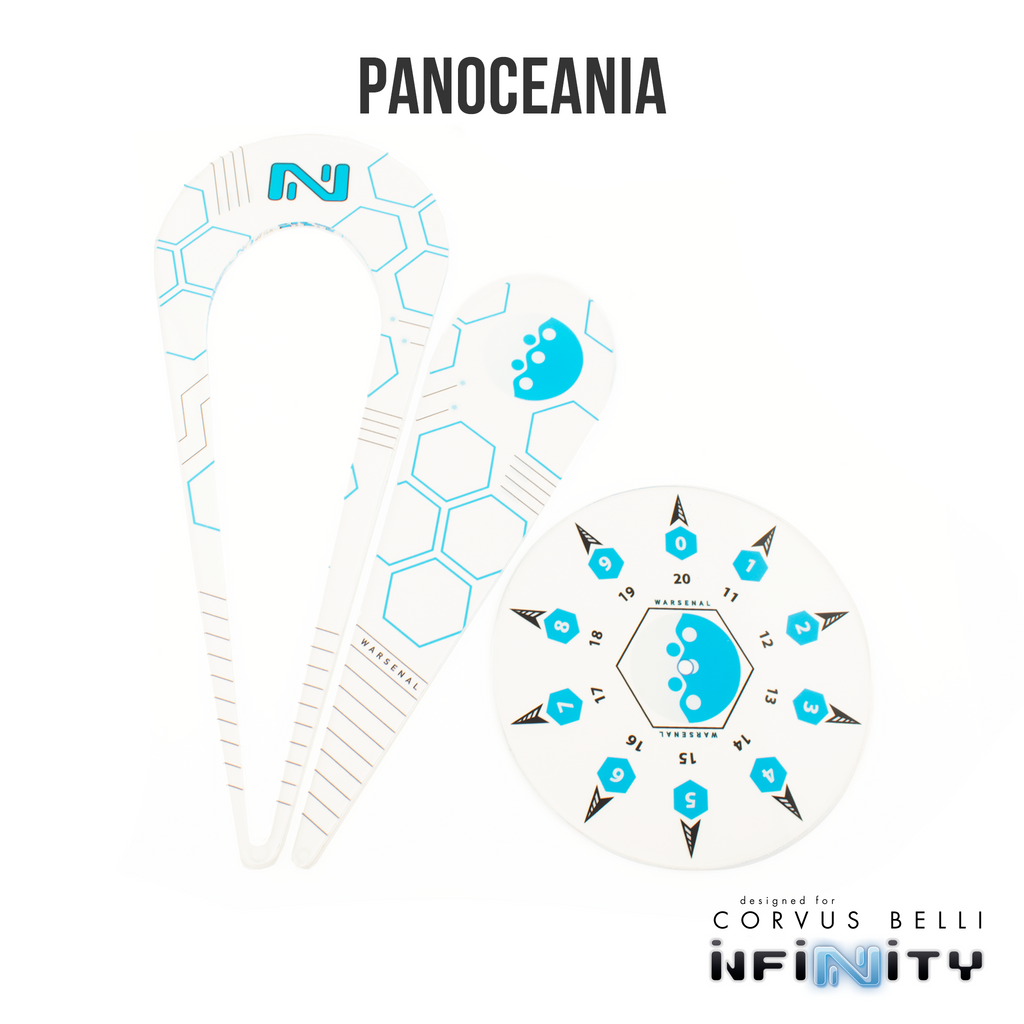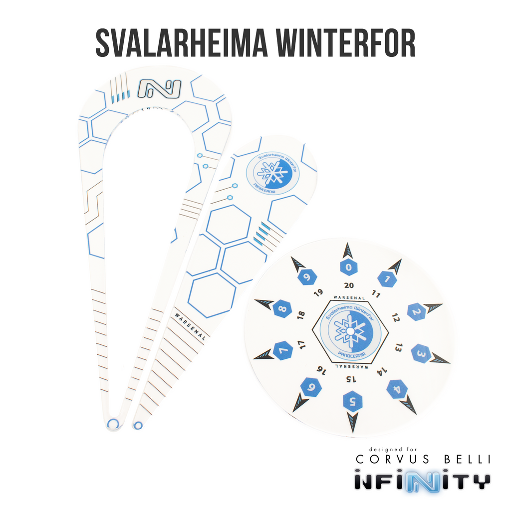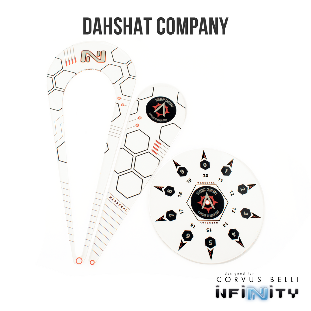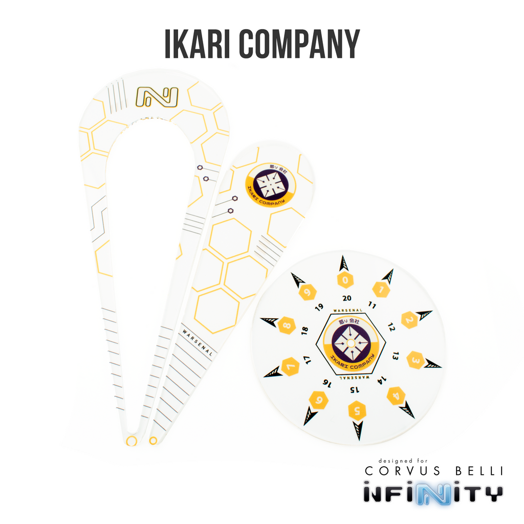 All the templates you need to play Infinity: the Game, emblazoned with the faction logo of your choice!