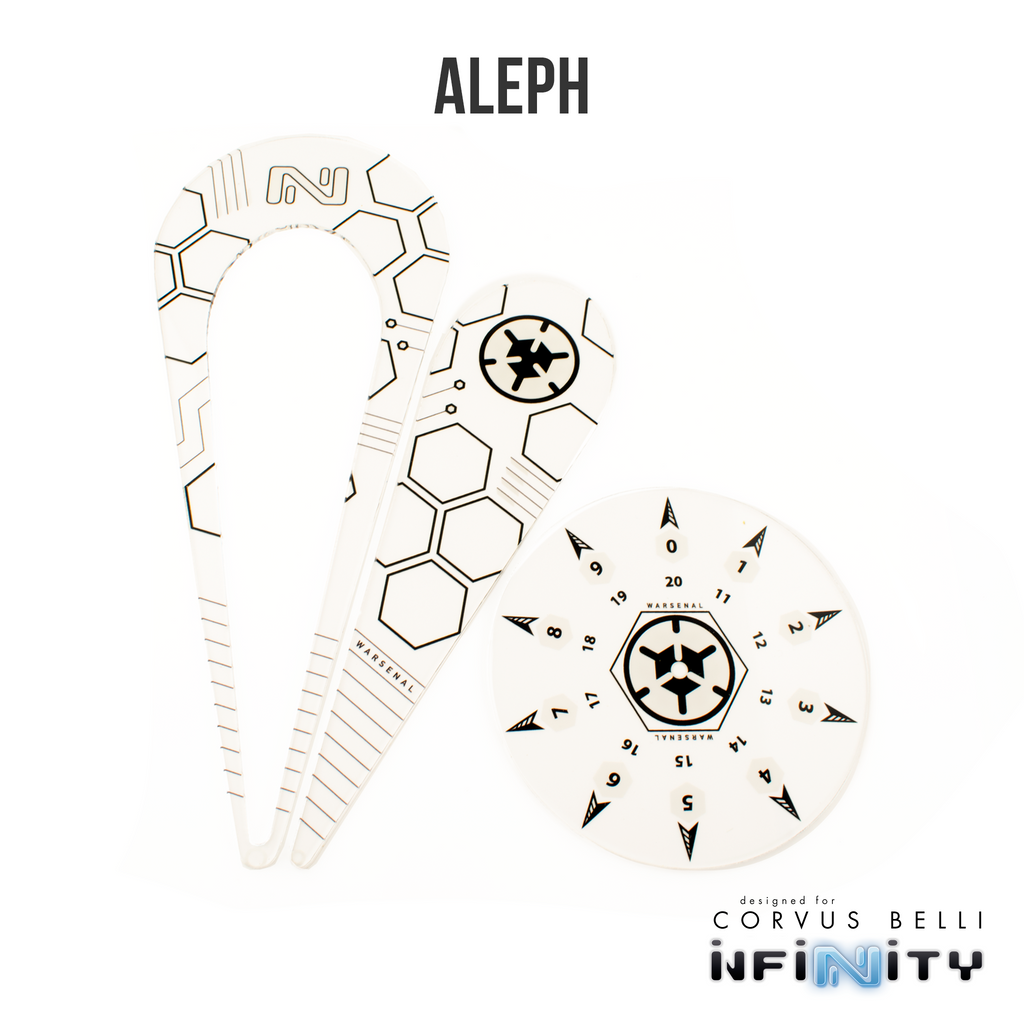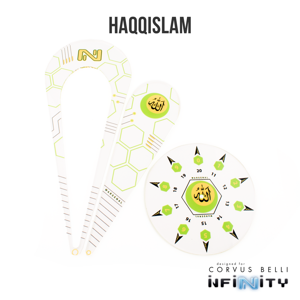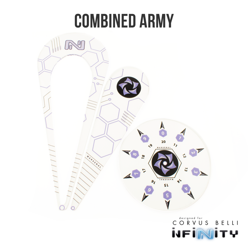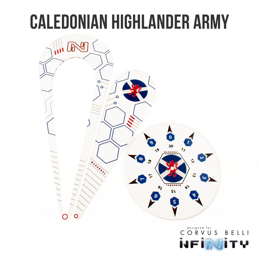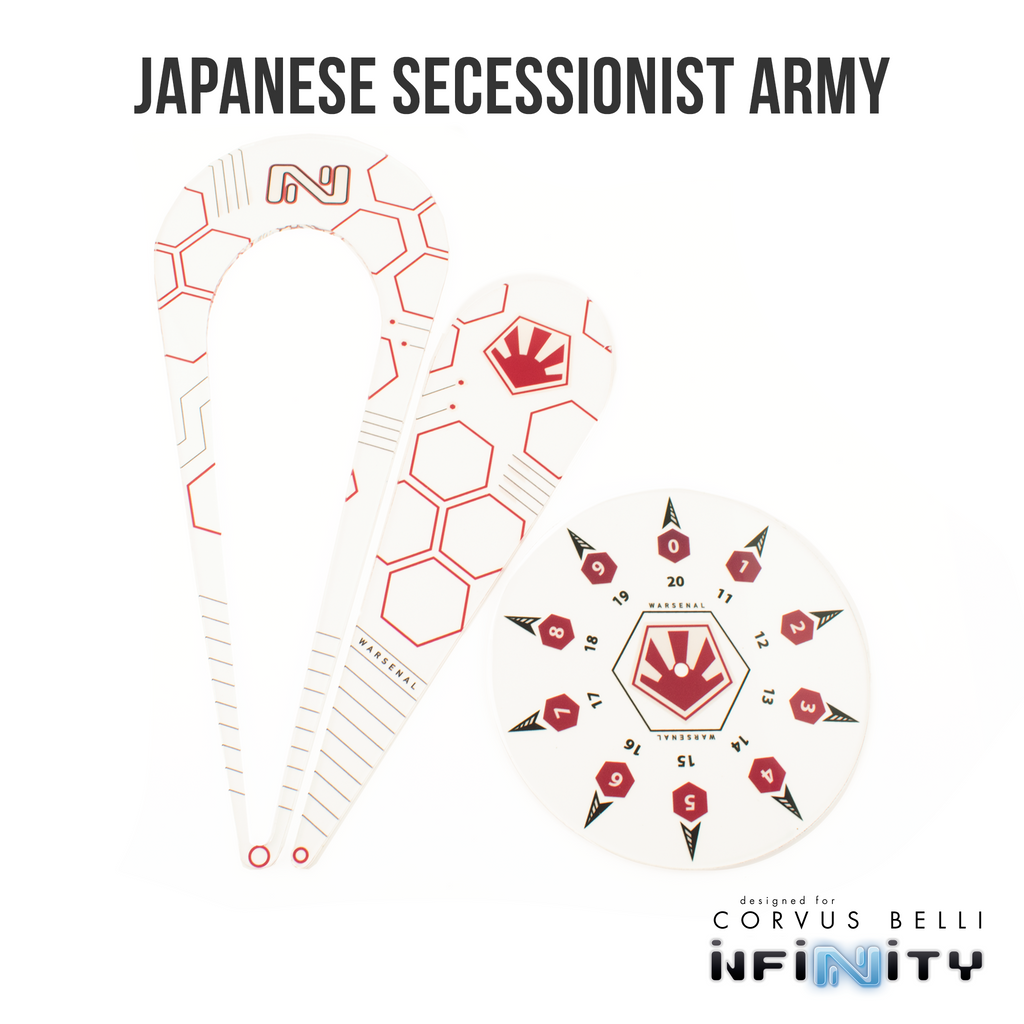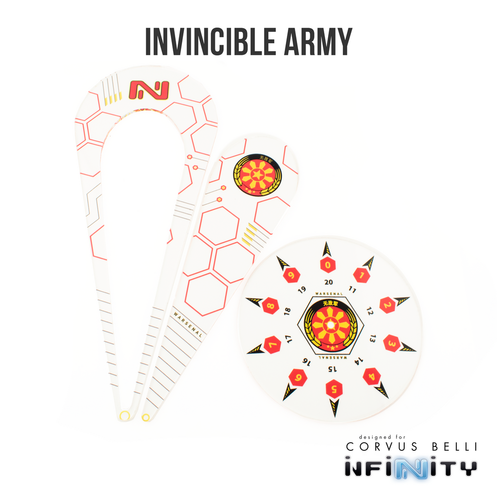All the templates you need to play Infinity: the Game, emblazoned with the faction logo of your choice!