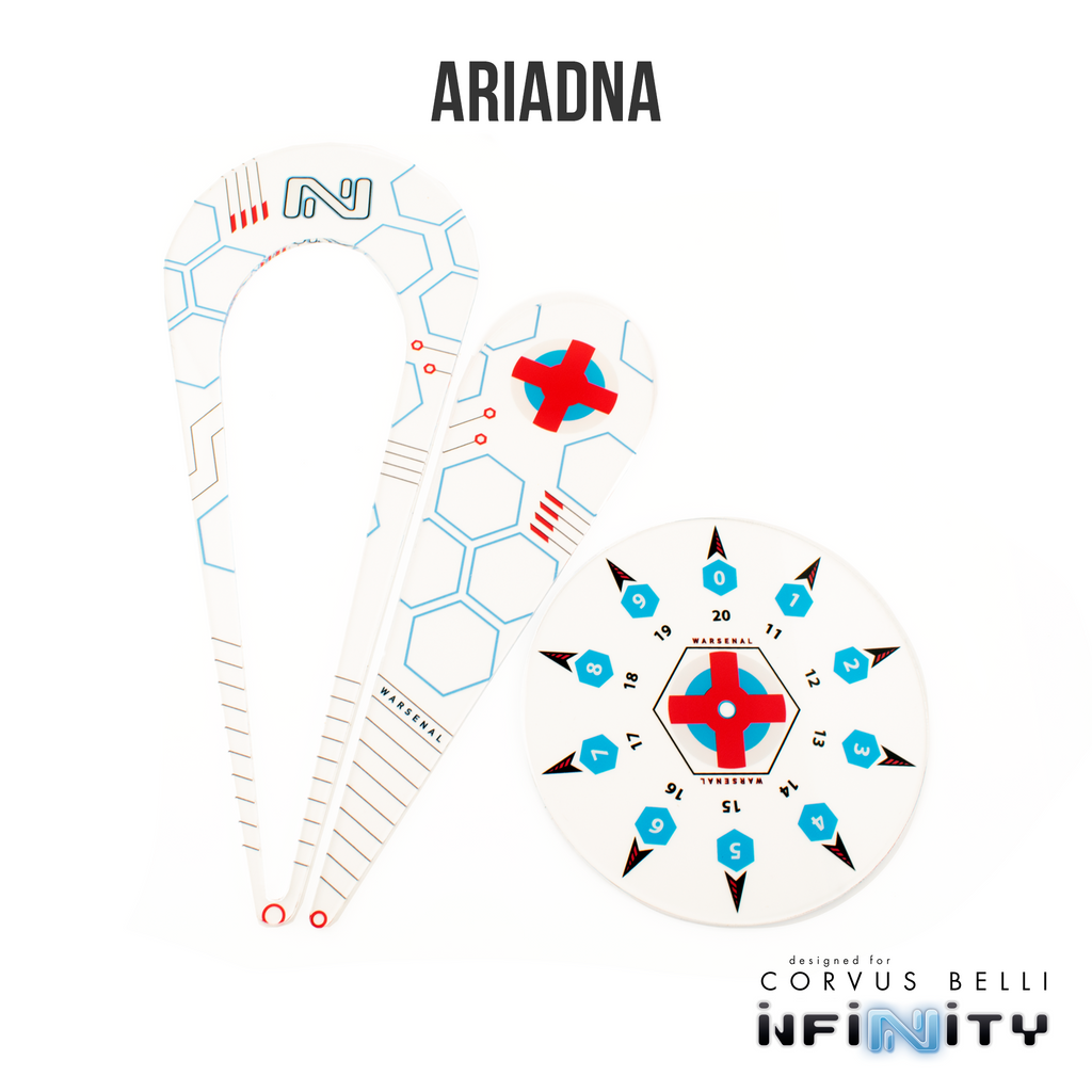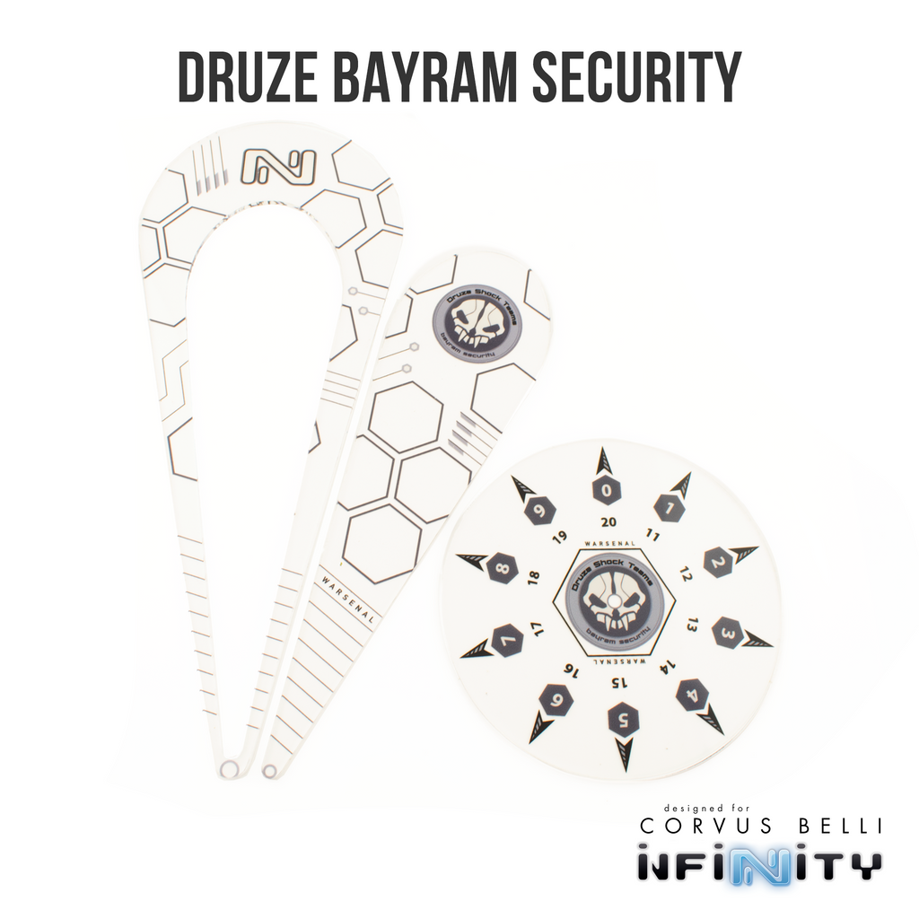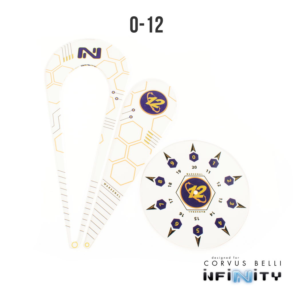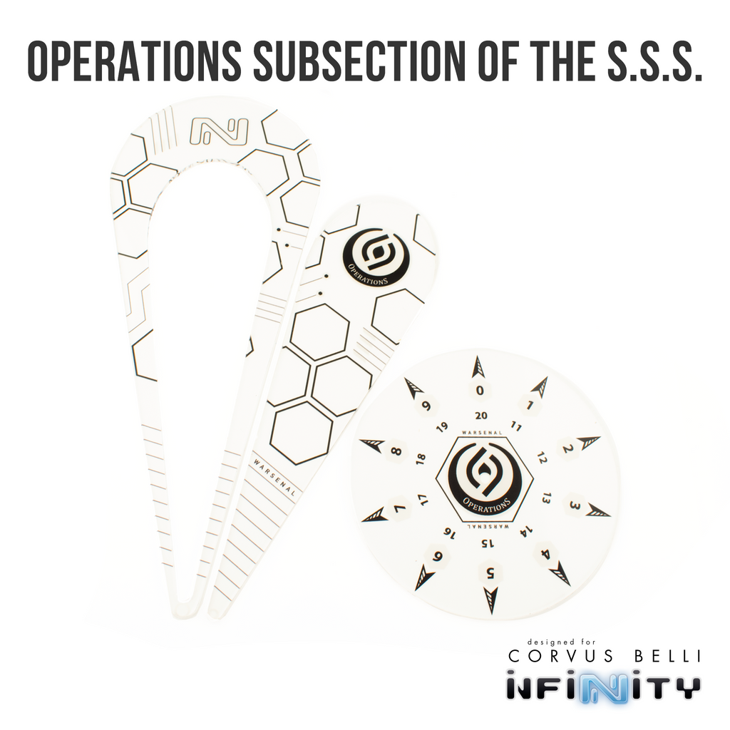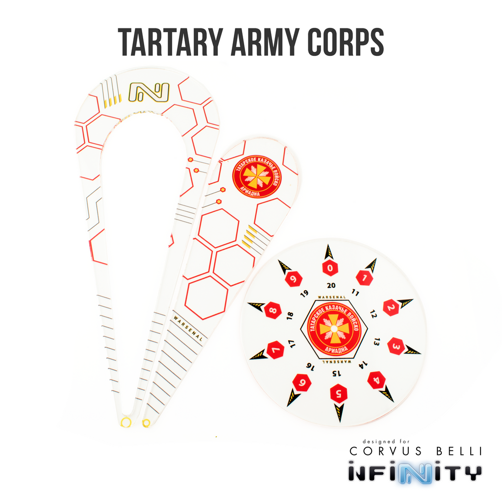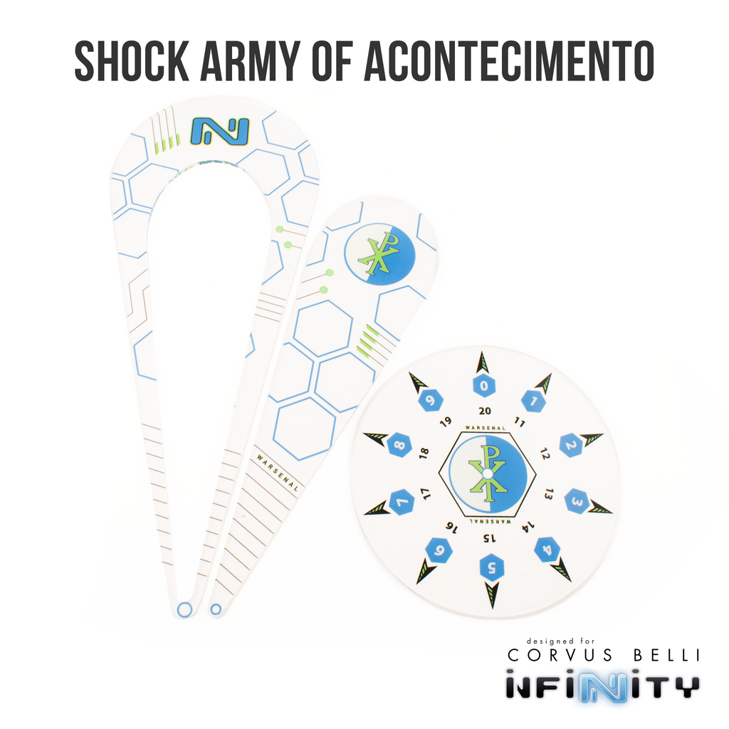 All the templates you need to play Infinity: the Game, emblazoned with the faction logo of your choice!