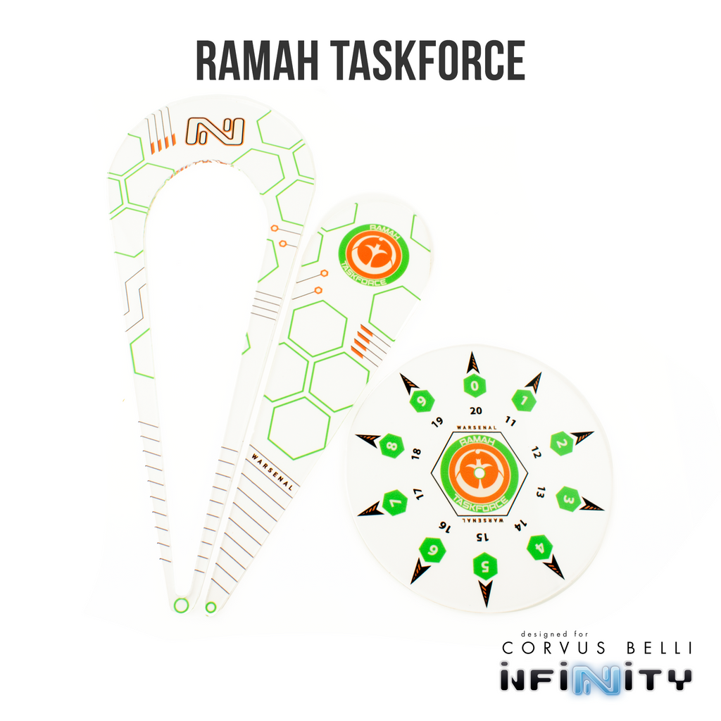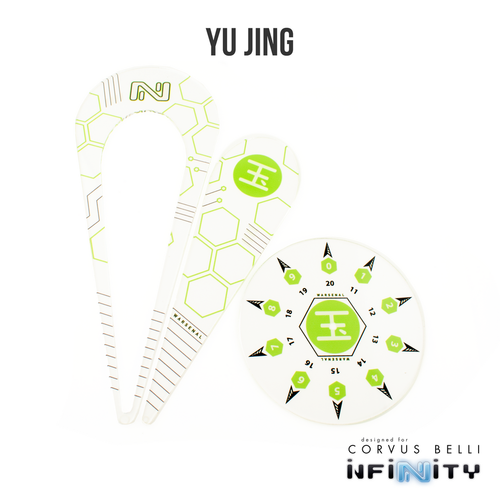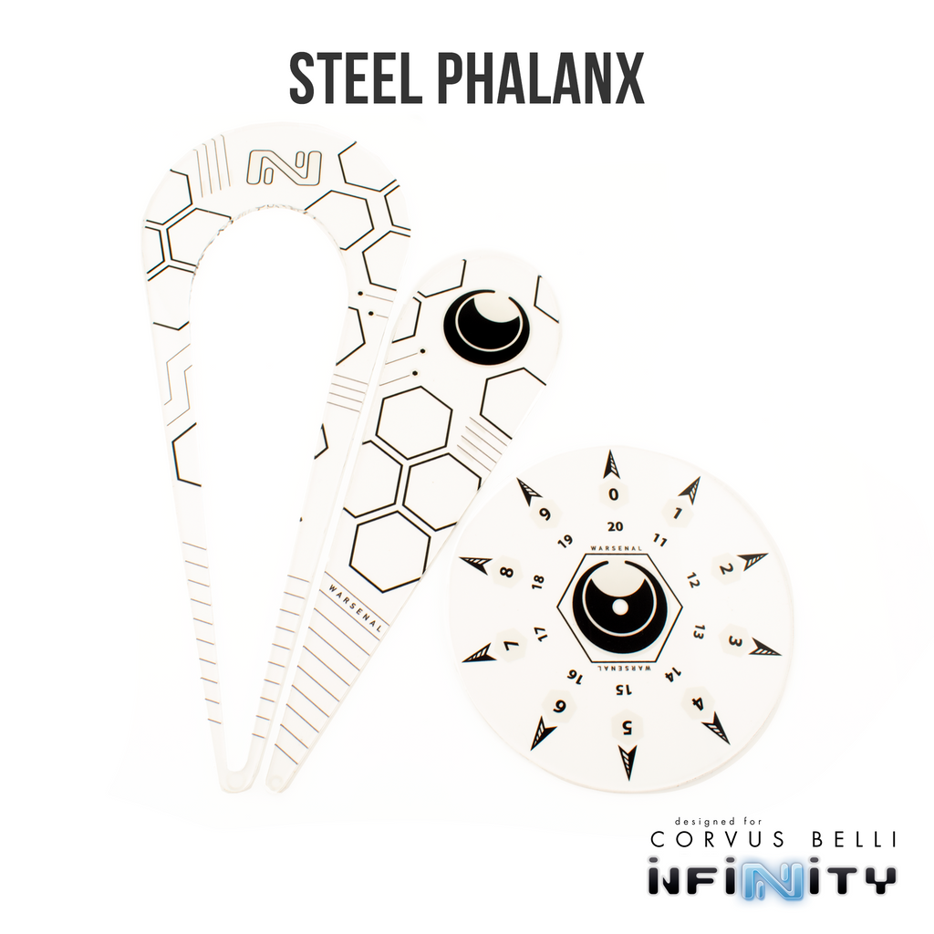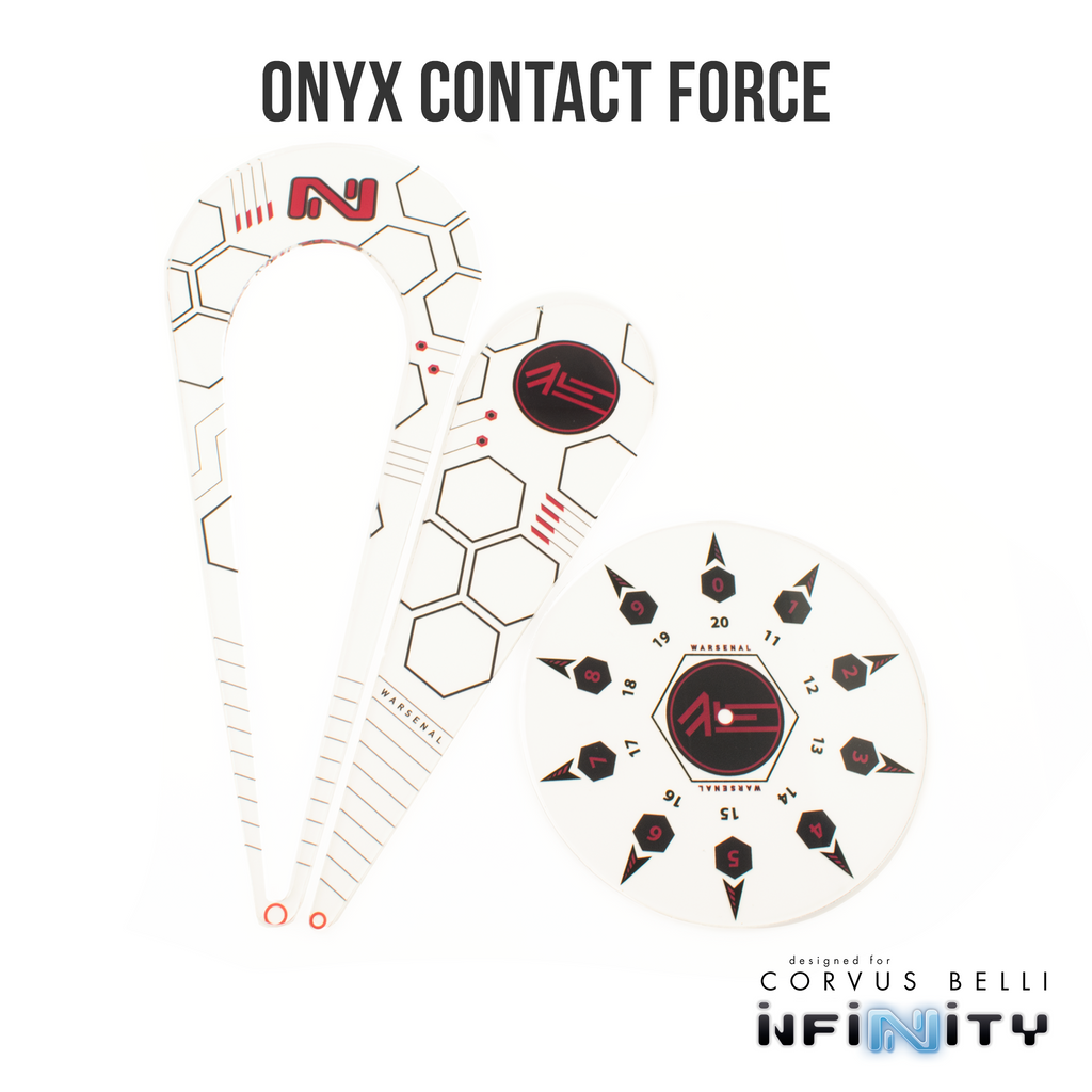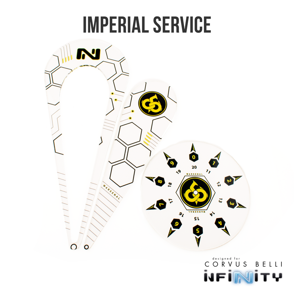 All the templates you need to play Infinity: the Game, emblazoned with the faction logo of your choice!