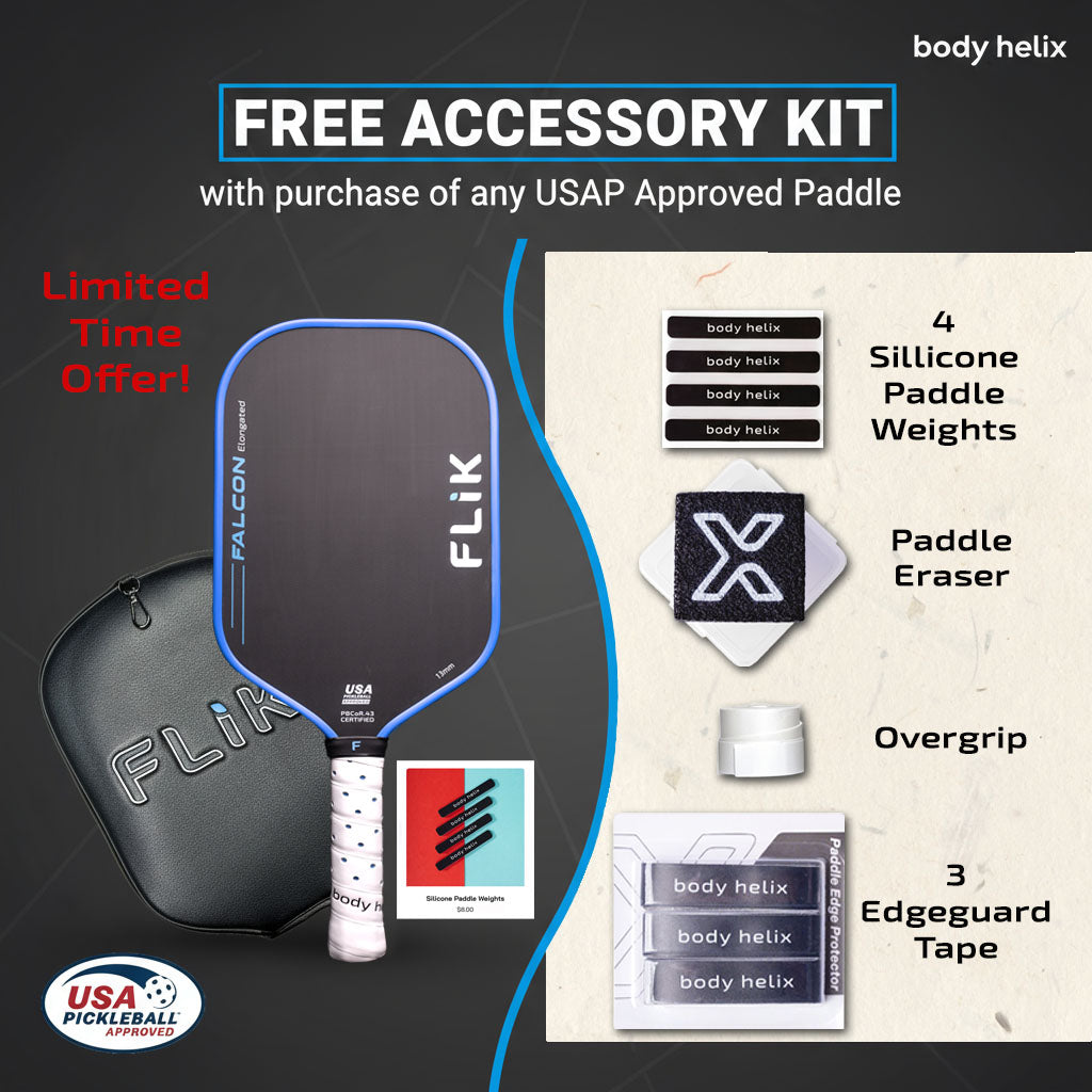 The FLiK Falcon comes in around 8.05 oz, offering you the perfect foundation for personalization. We include a package of 4 silicone paddle weights and a customization sheet, so you can make the paddle just right for you.