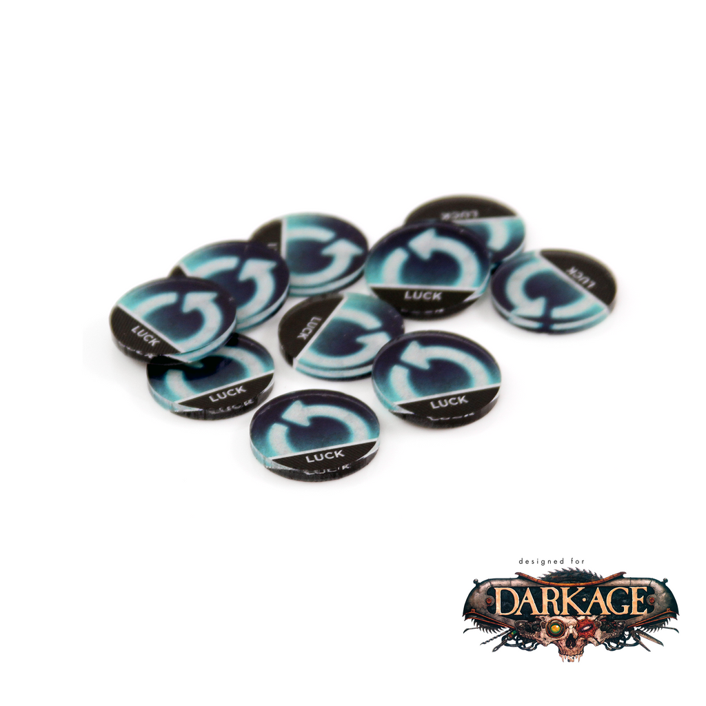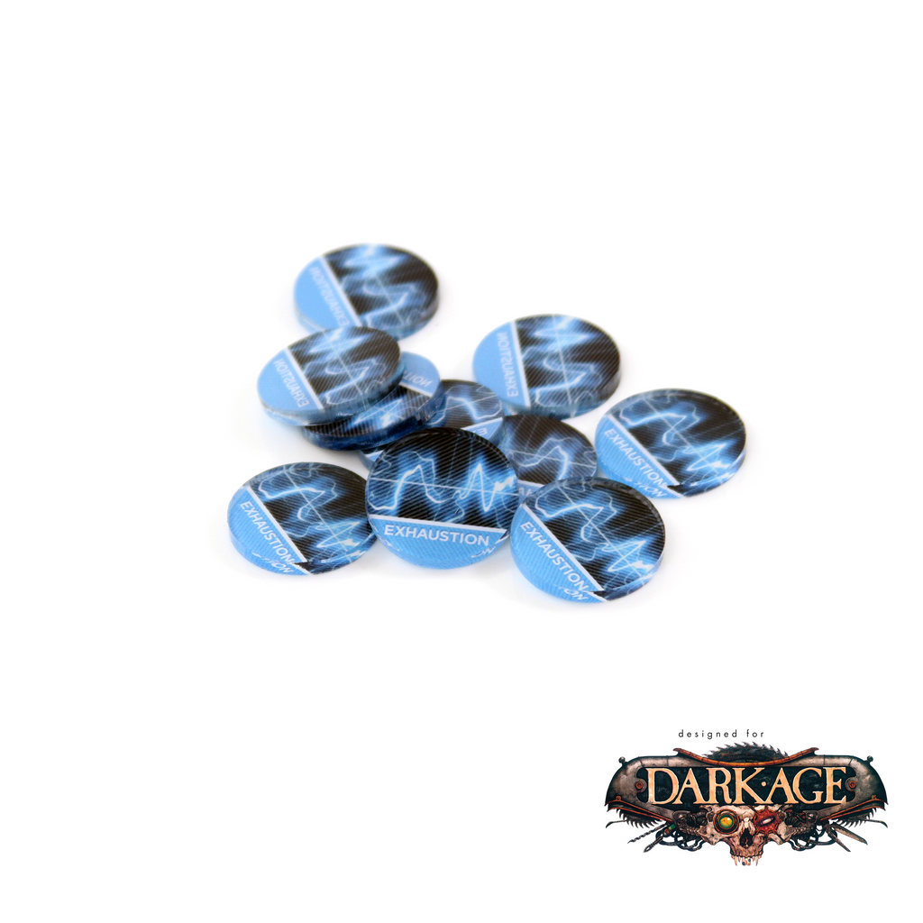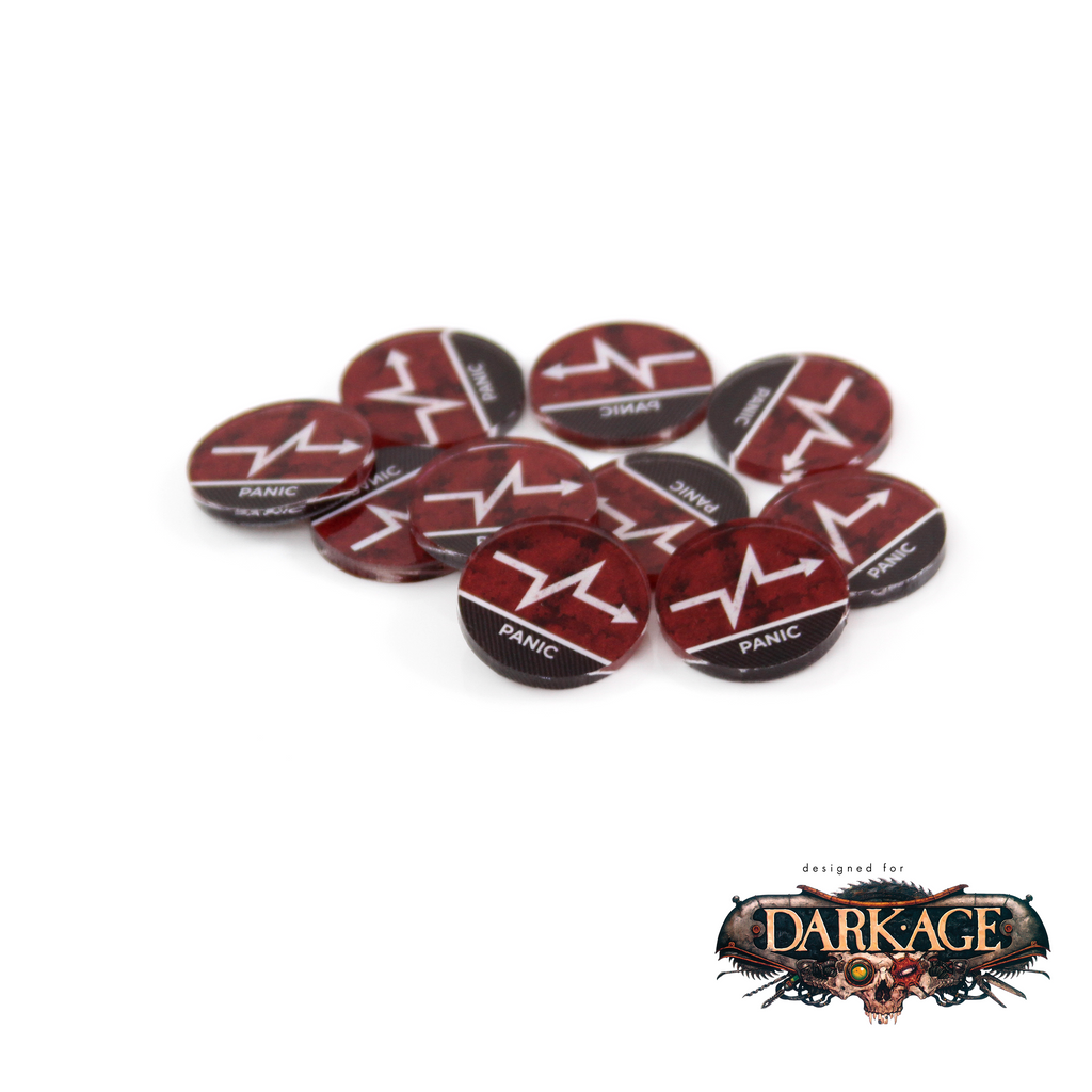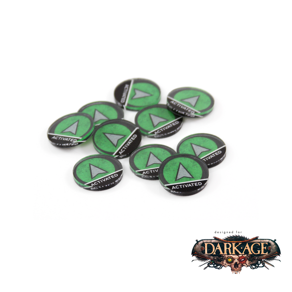 Markers are 25mm in diameter and are printed in full color on 3mm clear acrylic. Scavenge Markers are 30mm.