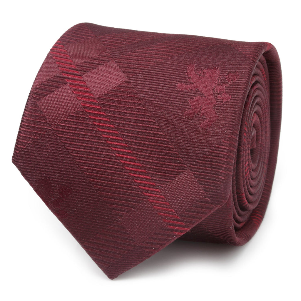 Understated and a wardrobe essential for every Game of Thrones fan. This 100% silk slim tie brings together elegant crimson and ruby plaid checks with the House Lannister Lion sigil hidden in discrete panels. It's the perfect way to show your allegiance to the wealthiest house in Westeros, either in the boardroom or at a black tie event. Officially licensed by HBO's Game of Thrones.