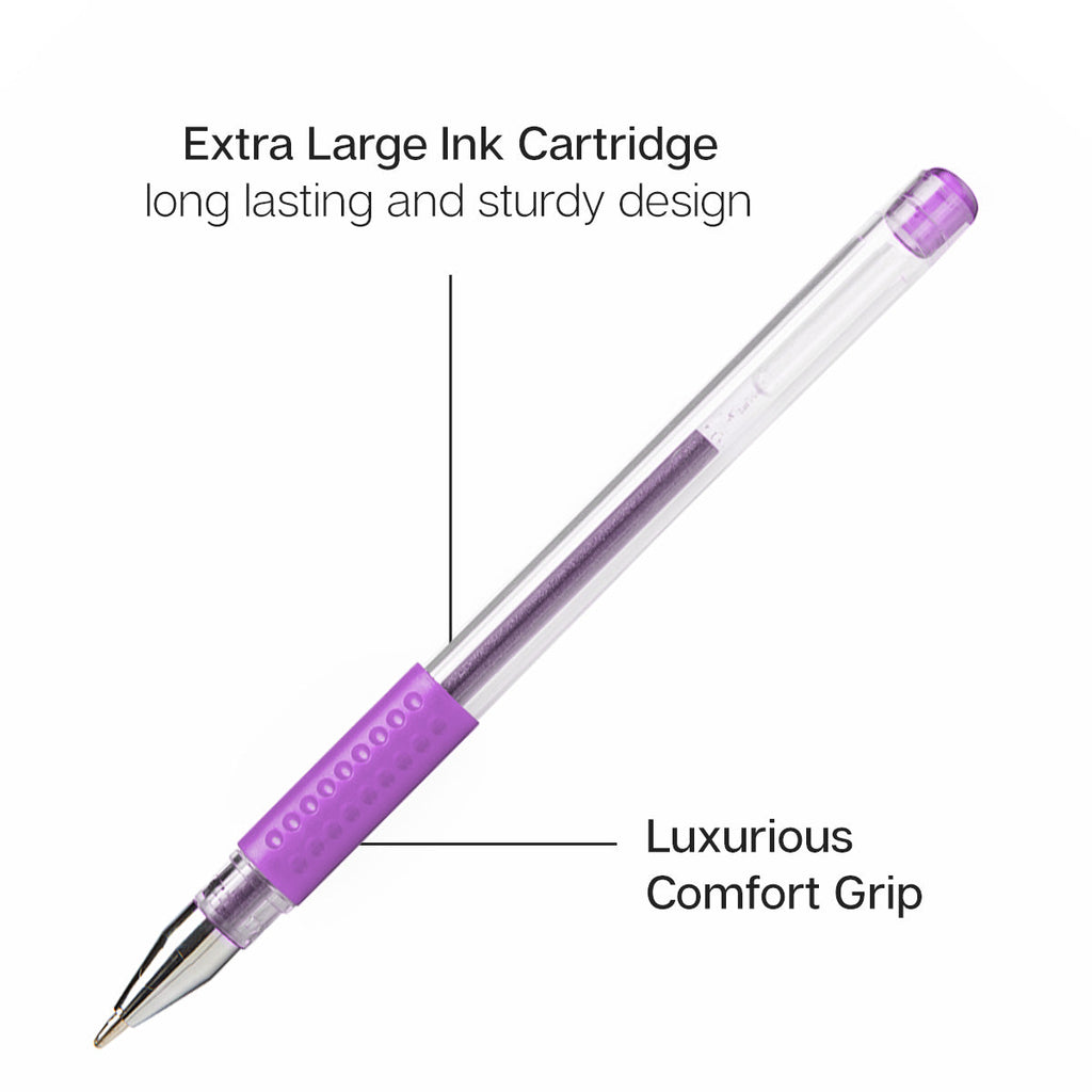 - Gel Pens for the Addicted Colorists with Luxurious Comfort Grip. Now you can color, design, and create to hearts content with our soft grip pens. Go ahead and spend hours coloring intricate designs and get lost in the joy of it. Our pen’s soft grips will give you the comfort while you create dazzling art.